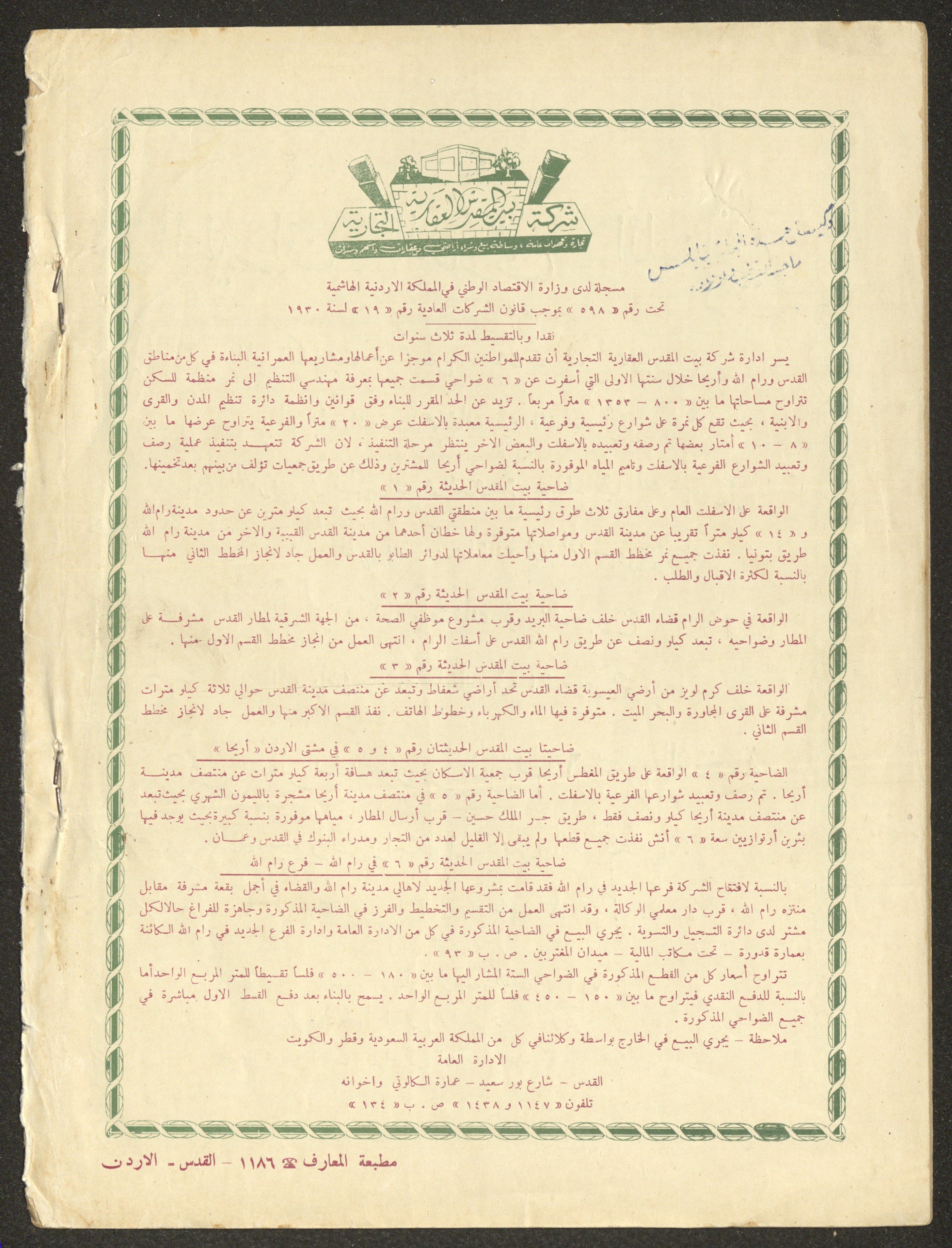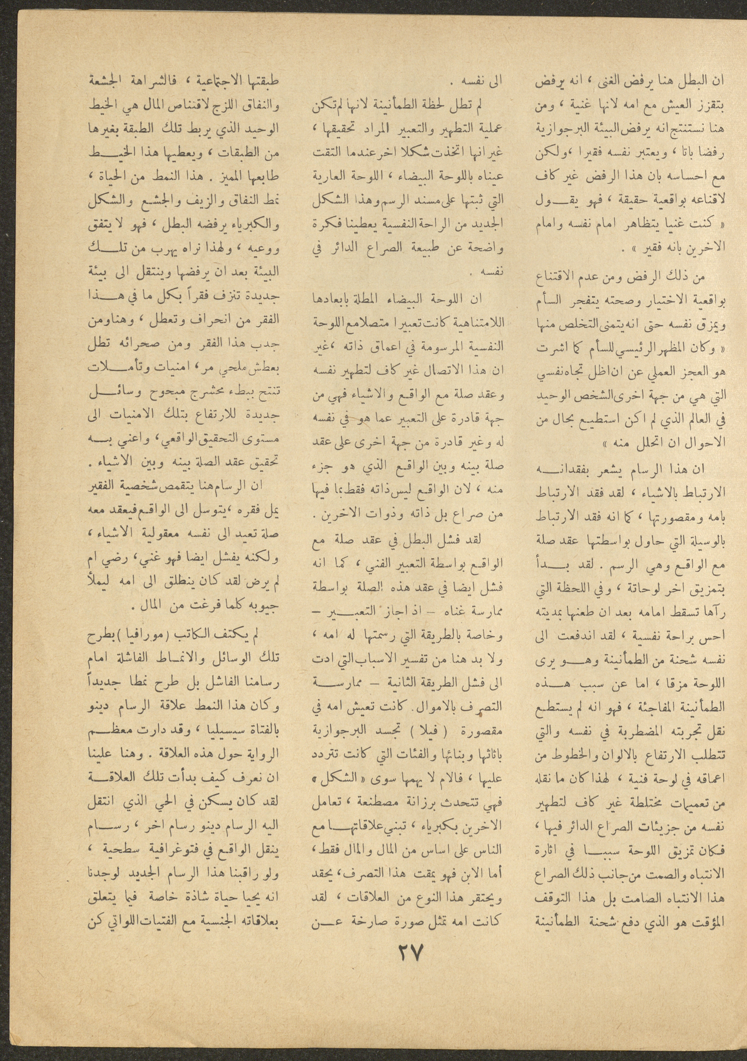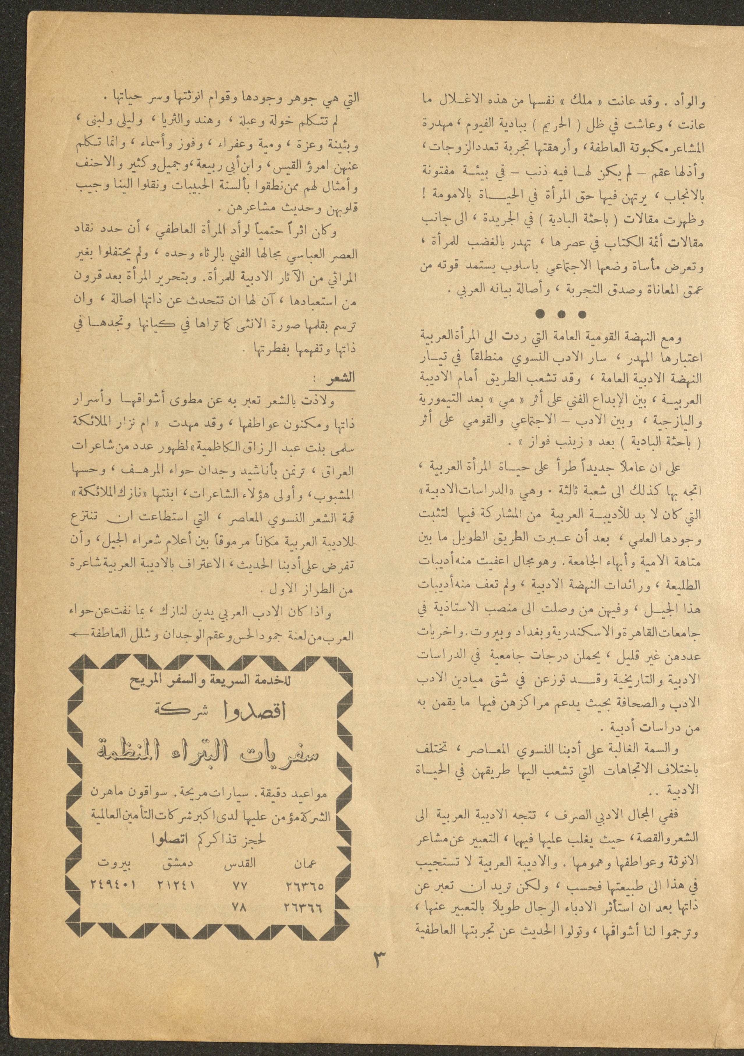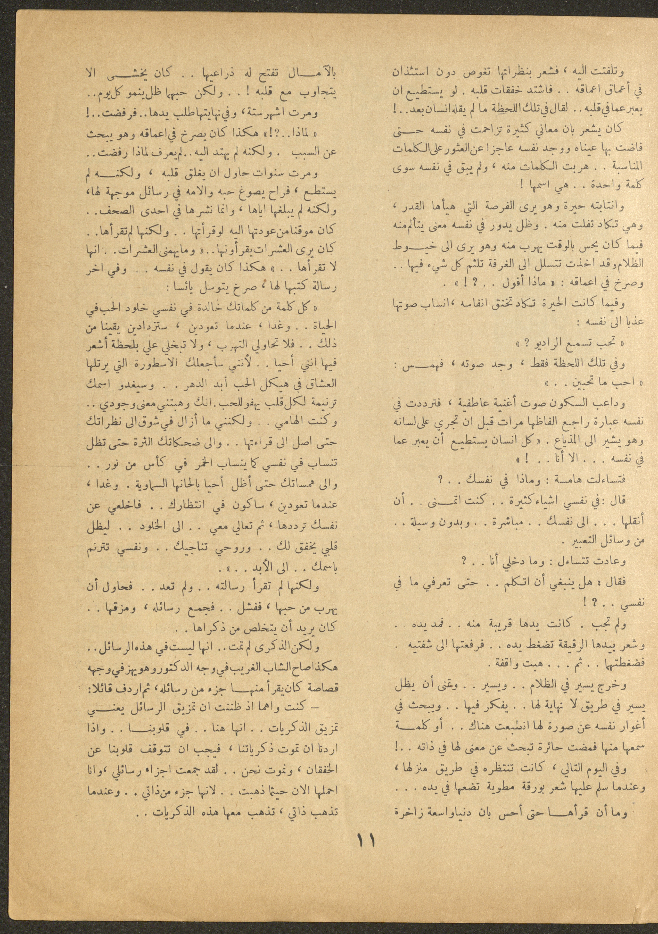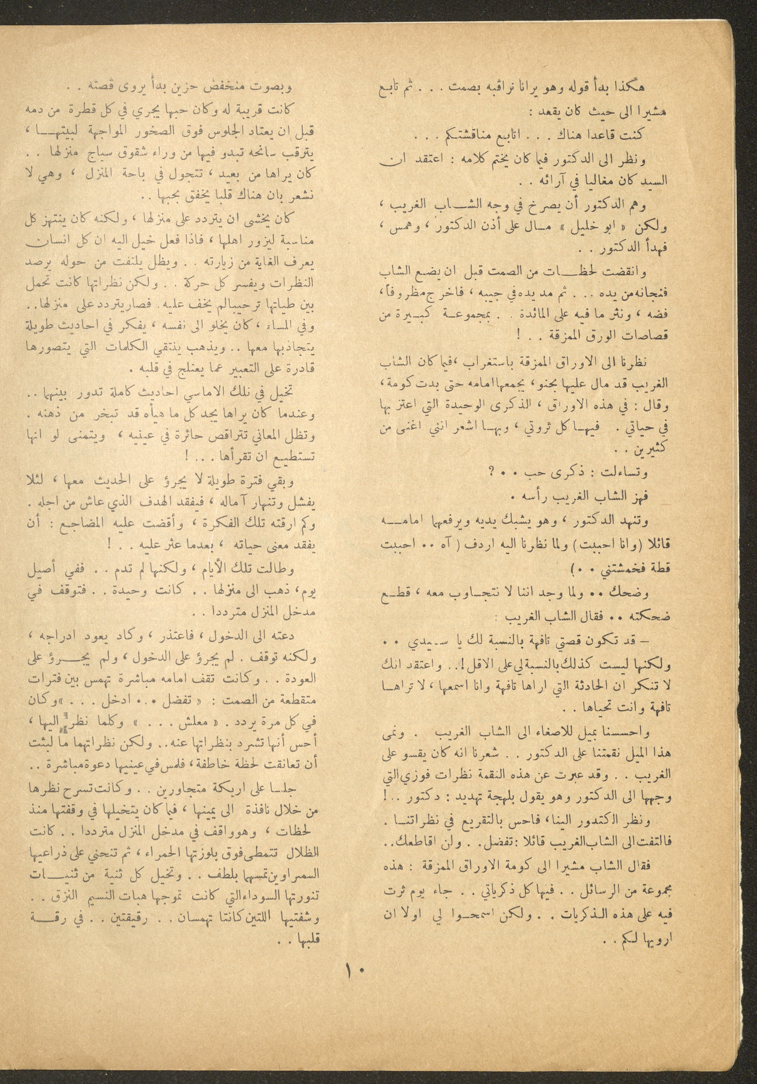 Issued by al-Manar Press Foundation in July 1962 and printed in Arabic, this 58-page document shows the 19th issue of al-Ofuq al-Jadeed Magazine, which is a monthly magazine concerned with literature, culture and thought, under the supervision of Editor-in-Chief Amin Shannar, and was printed in Dar al-Manar Press in Jerusalem. The price of the issue amounted to 60 fils and included photographs, articles, research, poems and stories, including: - "Contemporary Feminist Literature", research by Bint ash-Shati. - "Sarkha (Scream)", a poem by Ali al-Jundi. - "The Torn Letter", a story by Haitham al-Khattab. - "Shadow Play", a story by Tom Hood. - "Carnage", a story by Maliha abu Sharar. - "Laanat al-Kholoud (The Curse of Eternity)", a poem by Amin Shinnar. - "The Human and Boredom", research by Ali Issa.