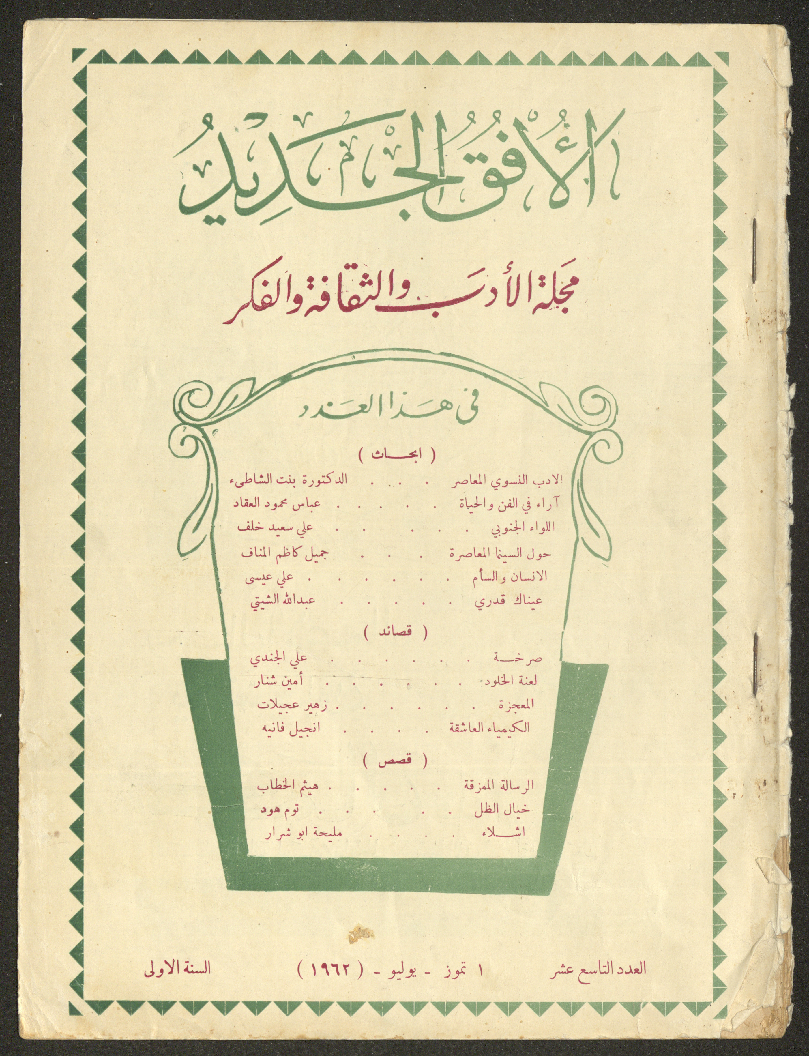 Issue 19 of al-Ofuq al-Jadeed Magazine, July 1962