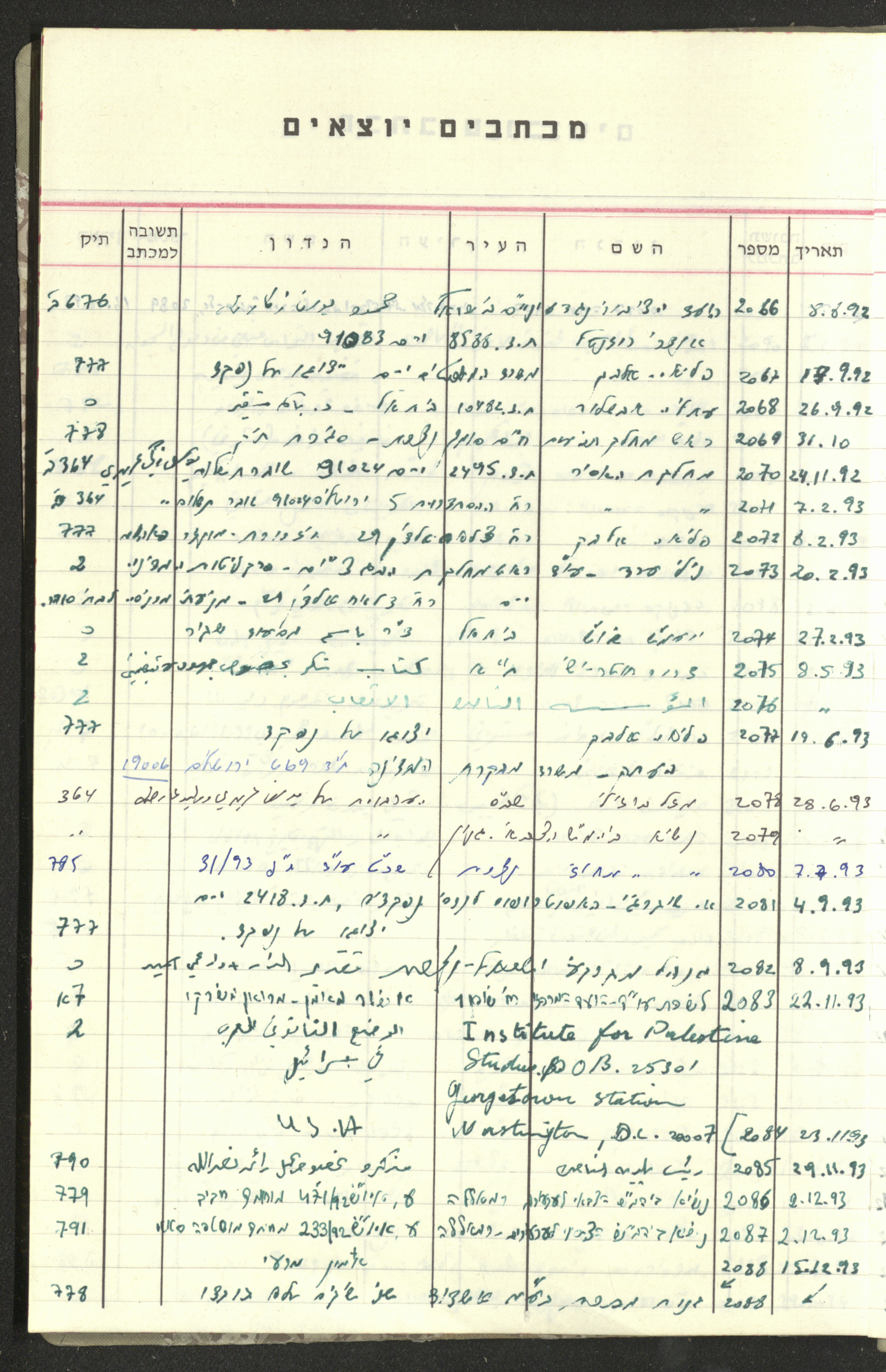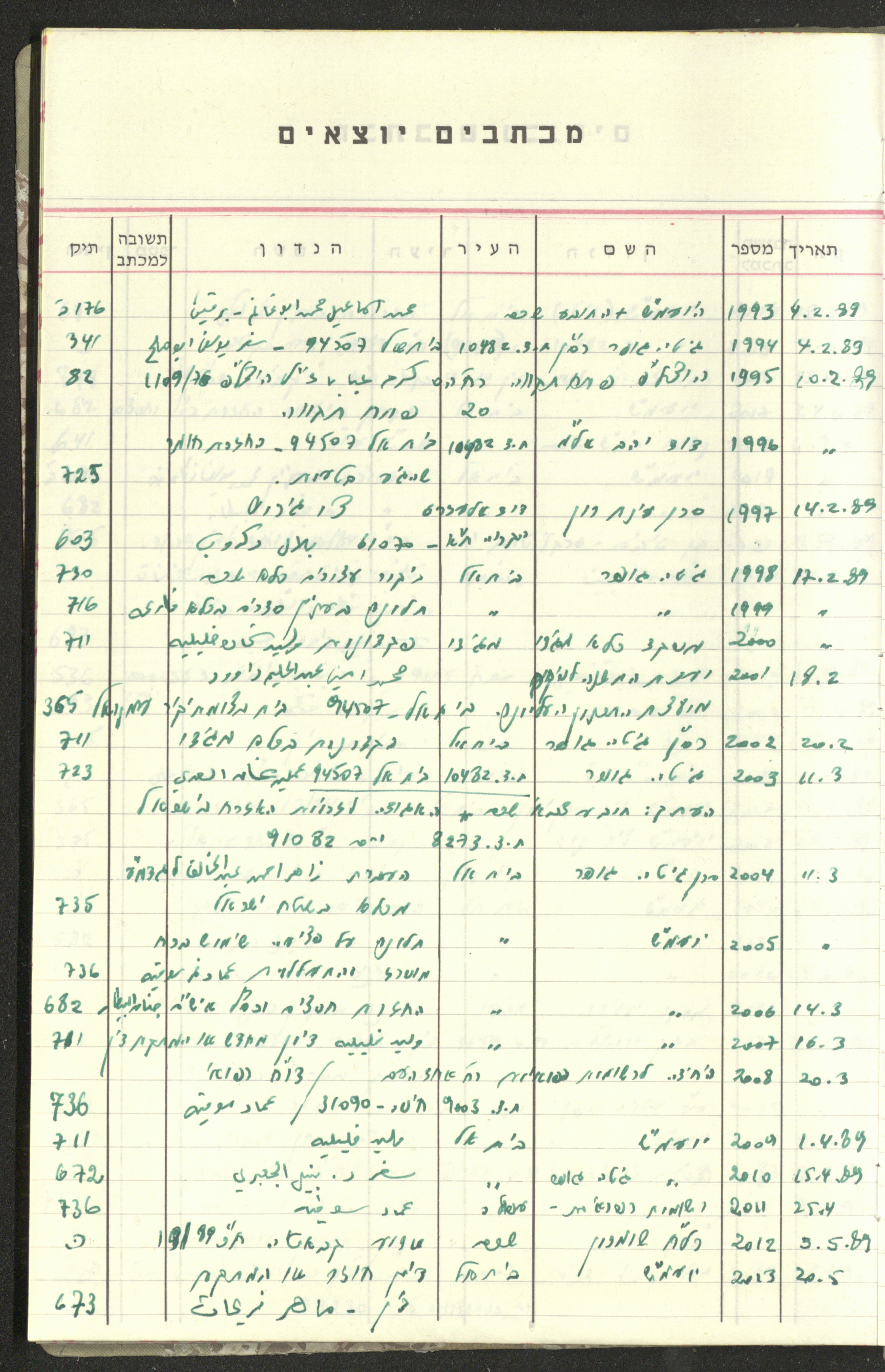 وثيقة مكتوبة بخط يد وليد الفاهوم باللغتين العربية والعبرية، تتضمن جداول بالقضايا القانونية التي تعود للفترة ما بين 1986 حتى 2009 ، هذا ويظهر فيها أرقام القضايا وصاحبها وتاريخها ونوعها.