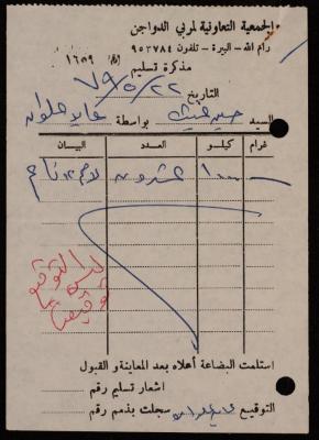 "مذكرة تسليم"، صادرة عن الجمعية التعاونية لمربي الدواجن لحسن الخطيب، 22 أيار 1979