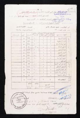 "School Certificate" of Hussein Salem by the Teachers Training Centre in Ramallah, 14 August 1974