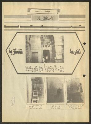 "المدرسة التنكزية جزء لا يتجزأ من تاريخنا"، تحقيق في جريدة النهار، 26 حزيران 1987