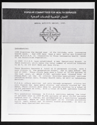 "Annual Activity Report", a Report Issued by the Popular Committees for Health Services, 1989