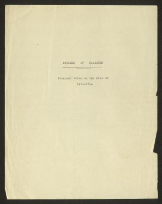 "Pattern of Disaster", a Draft by Anwar Nusseibeh
