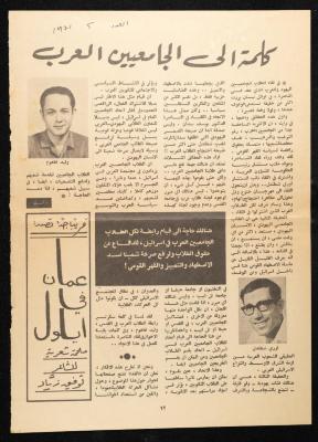 "كلمة إلى الجامعيين العرب"، قصاصة مجلة، 1971