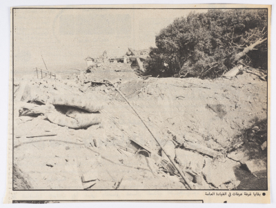 "بقايا غرفة عرفات في القيادة العامة"، قصاصة من العدد 135 من جريدة القبس، 4 تشرين الأول 1985