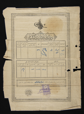 "An Ottoman Birth Certificate" Issued by the Government of the Ottoman Empire to Dhyab Khalil, 1906