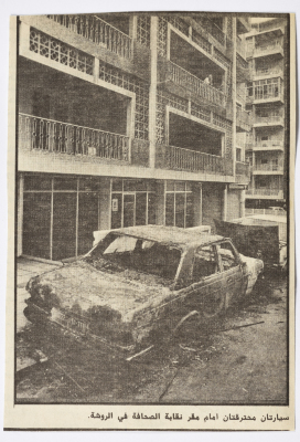 "Two Burned-Out Cars at Raouché", a Newspaper Clipping, 1982- 1989