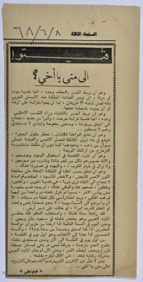 "For How Long, My Brother?", a Clipping from Palestine Newspaper, 1968