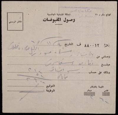 "A Receipt", by the Hashemite Kingdom of Jordan to Lawyer Rashad, 9 November 1963