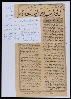 "To Bassam ash-Shakʿa", a Clipping from al-Watan Newspaper, 6 June 1980