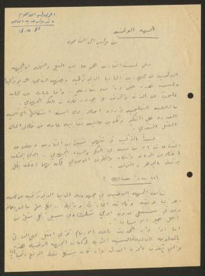 A Condolences Letter to Samiha Khalil from Her Brother, Amman, February 1982