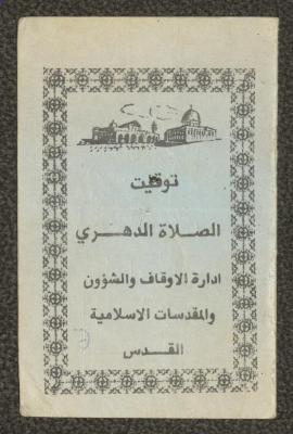 "The Prayer Timing", the Islamic Waqf Administration, Jerusalem, 1988