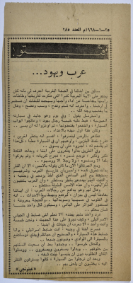 "عرب ويهود"، قصاصة من جريدة فلسطين، 1968