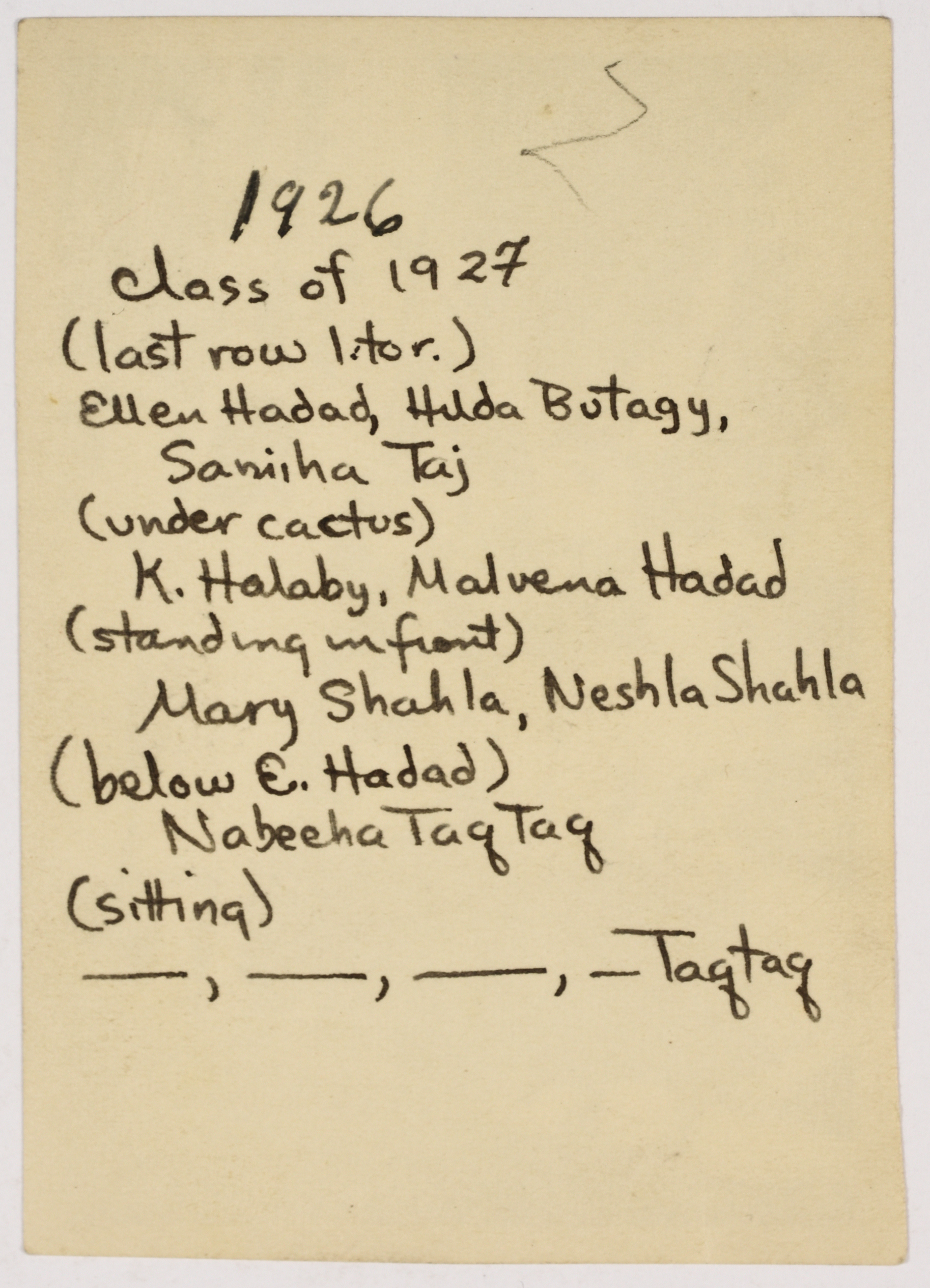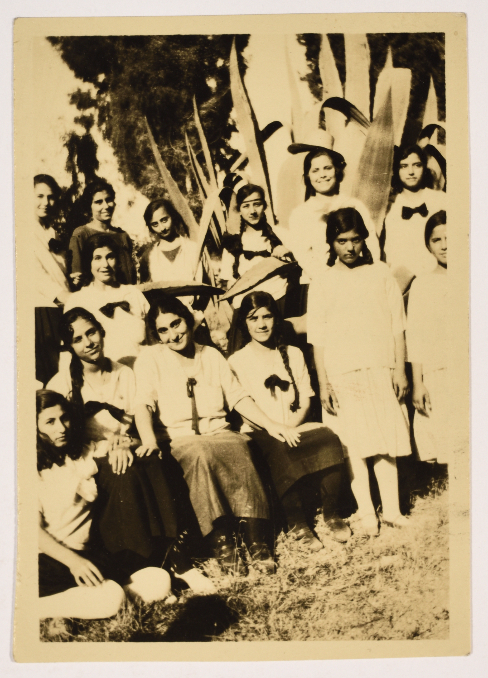 صورة غير ملونة يظهر فيها خريجات مدرسة الفرندز للعام 1927، وُجدت في مجموعة مدارس الفرندز .