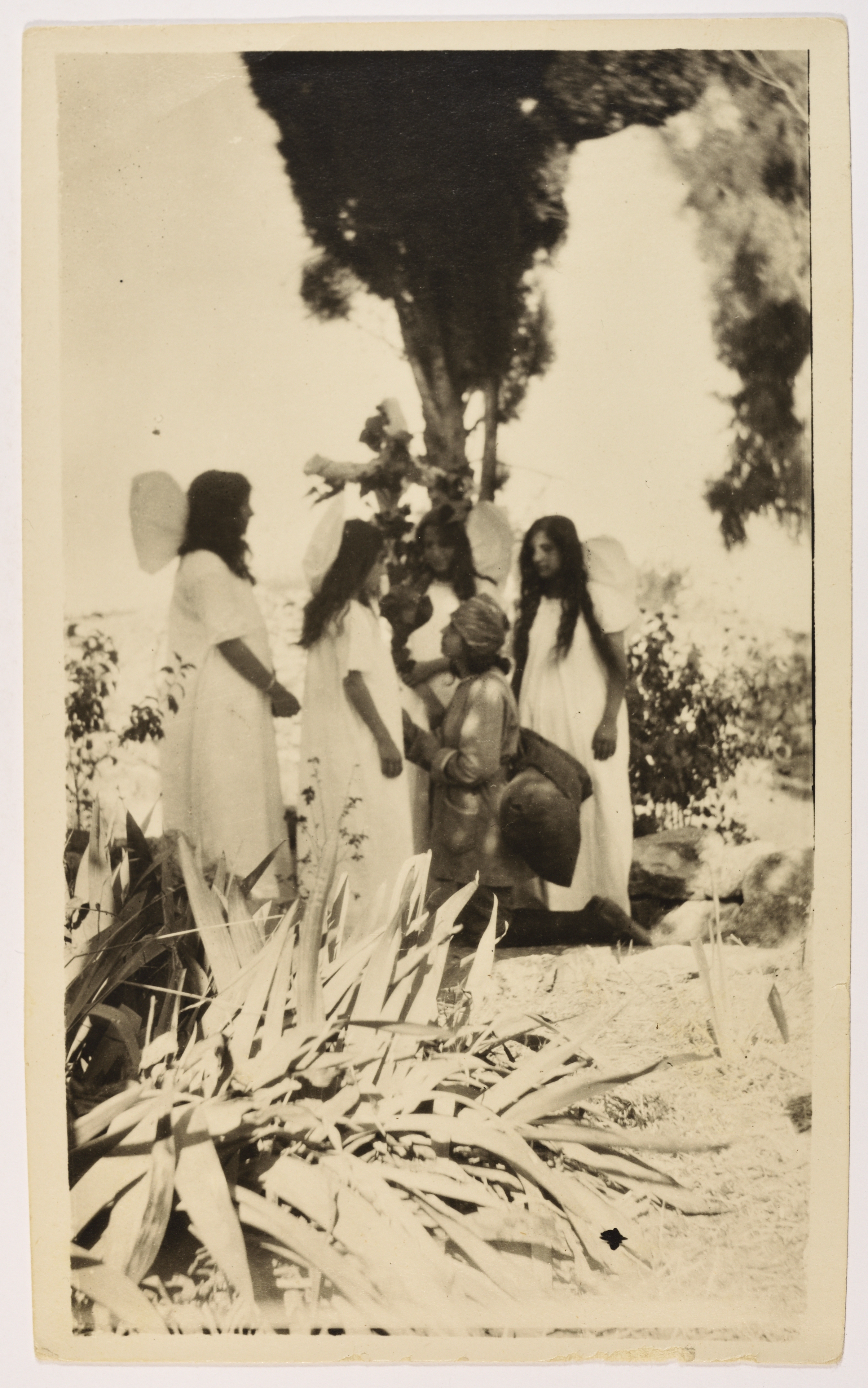 صورة غير ملونة يظهر فيها مجموعة من طالبات مدرسة الفرندز بأزياء تنكرية ، وُجدت في مجموعة مدارس الفرندز .