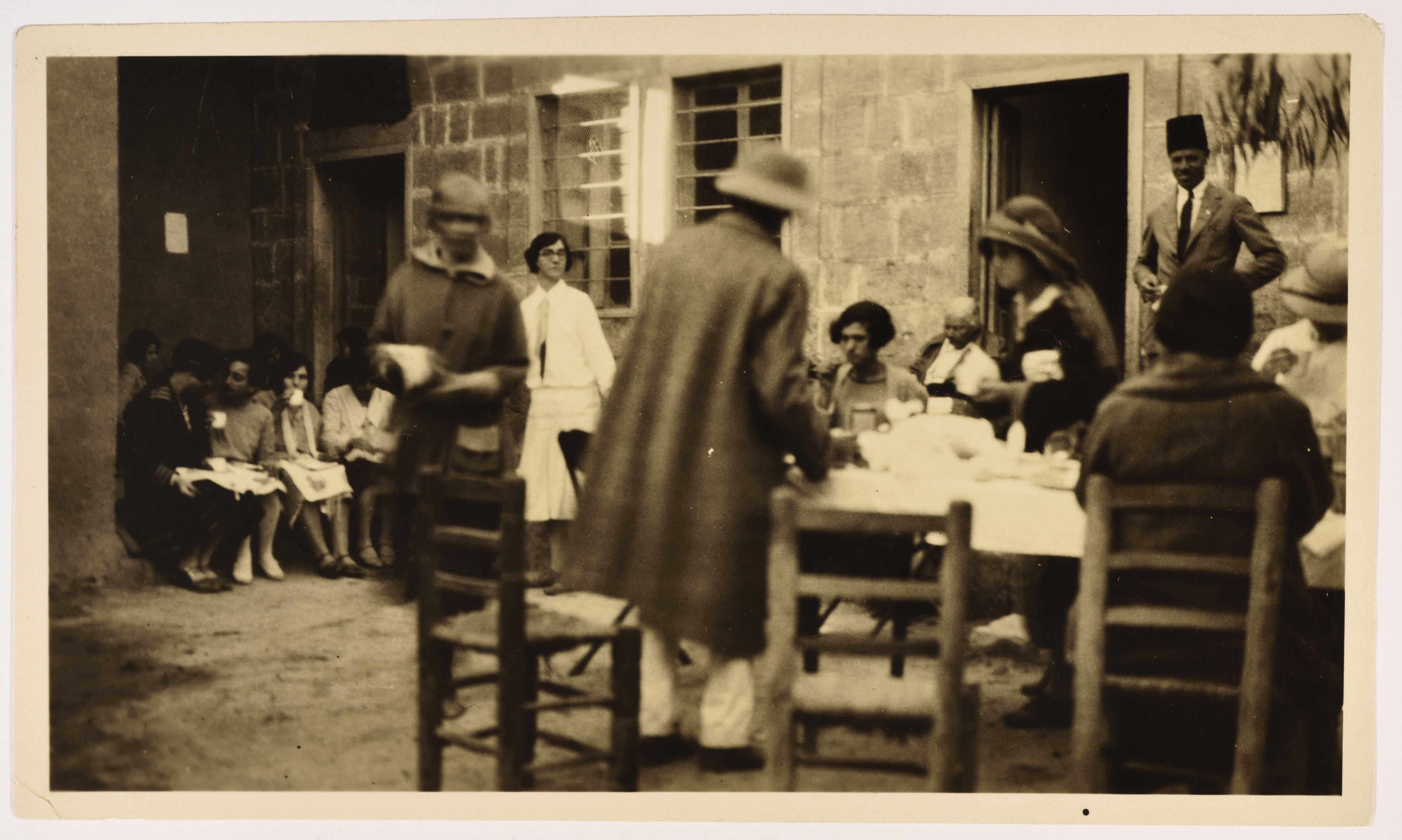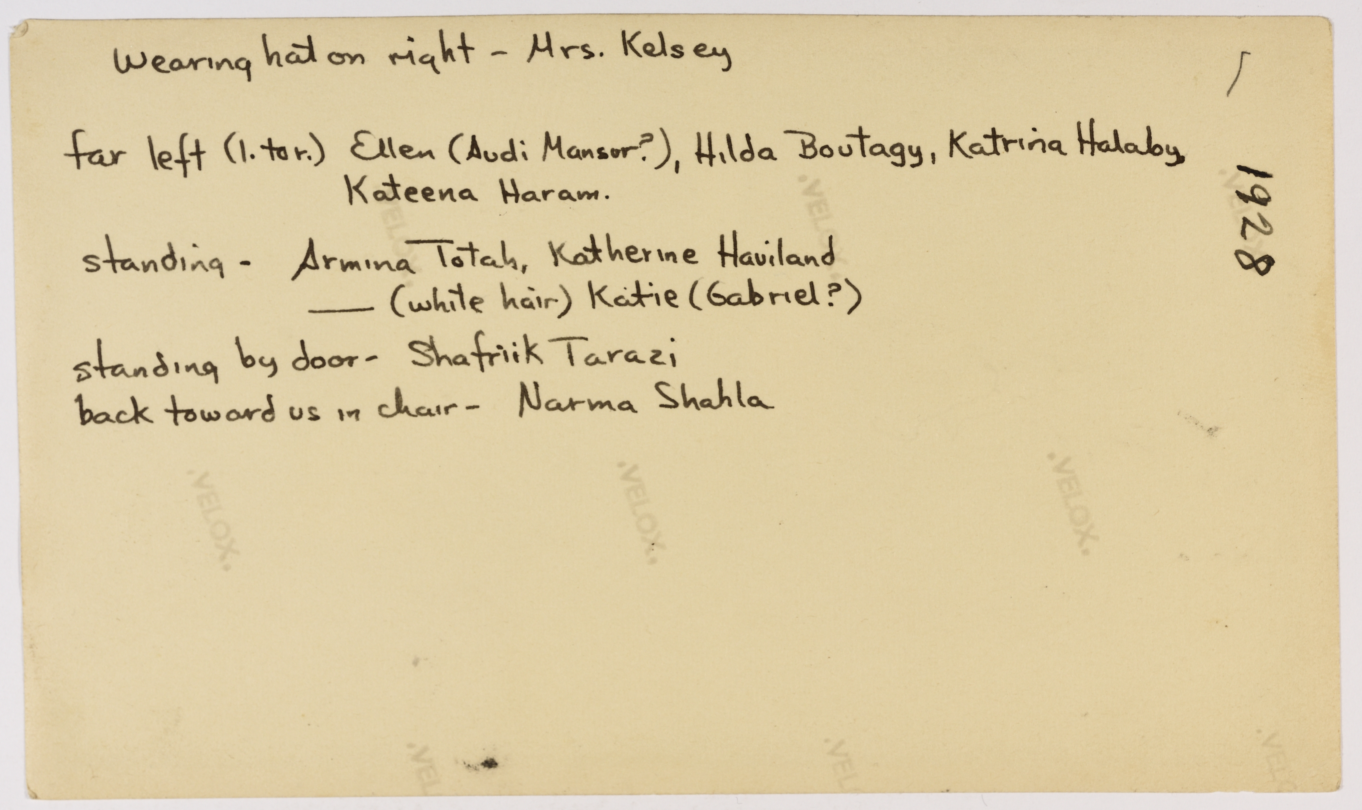 صورة غير ملونة يظهر فيها مجموعة من موظفي مدارس الفرندز عام 1928، وُجدت في مجموعة مدارس الفرندز .