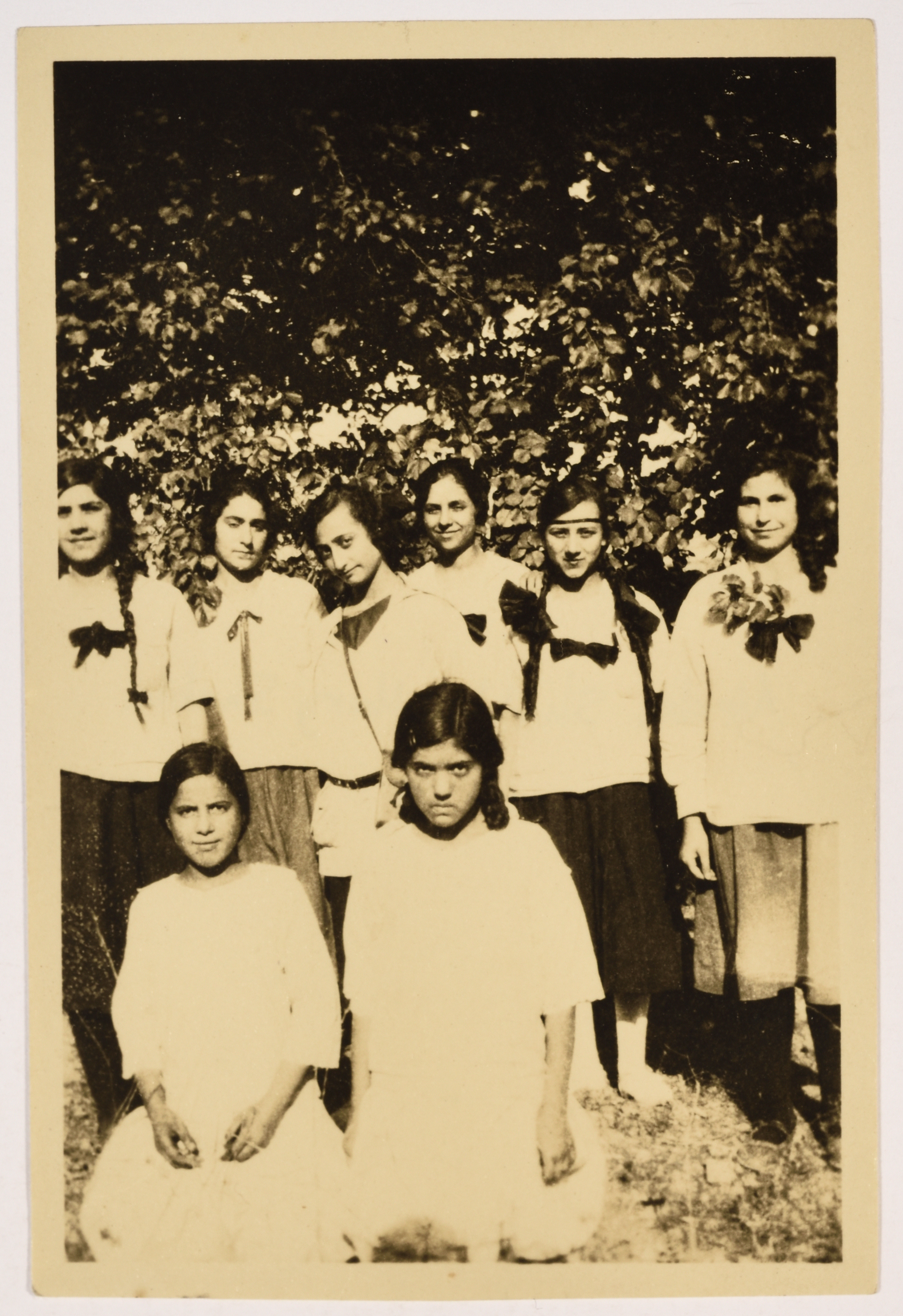 صورة غير ملونة يظهر فيها مجموعة من طالبات مدرسة الفرندز ، وُجدت في مجموعة مدارس الفرندز .