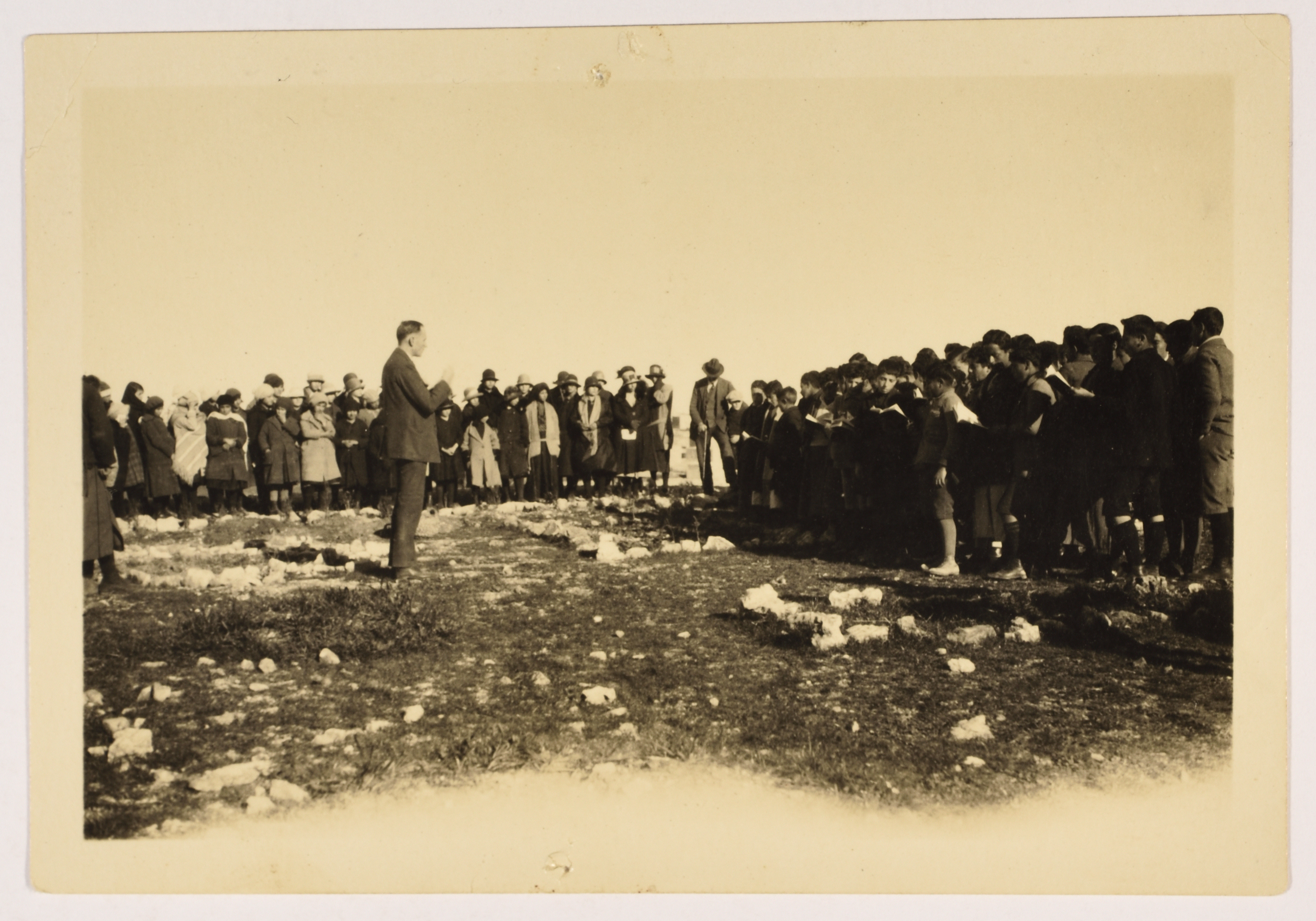 صورة غير ملونة يظهر فيها مجموعة من طلبة مدارس الفرندز فيما يُرجح أنها رحلة ثقافية، وُجدت في مجموعة مدارس الفرندز .