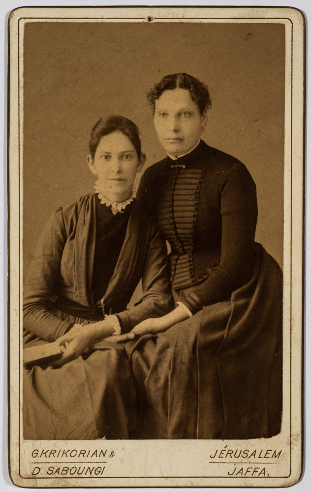 صورة غير ملونة يظهر فيها "إتتا جونستون" و"كايتي جابرييل"، وُجدت في مجموعة مدارس الفرندز .
