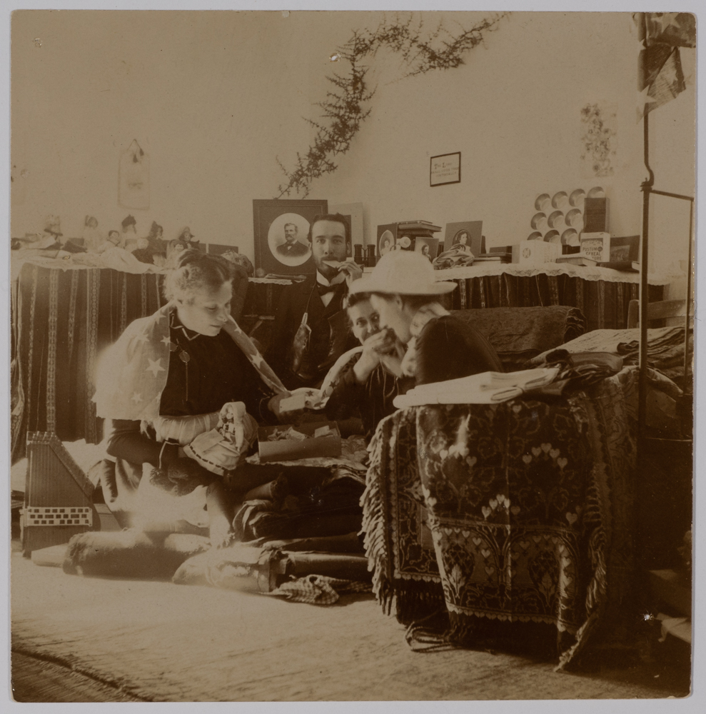 Found in the Friends School Collection, this black-and-white photograph shows Katie Gabriel and others at the Friends School dorm.