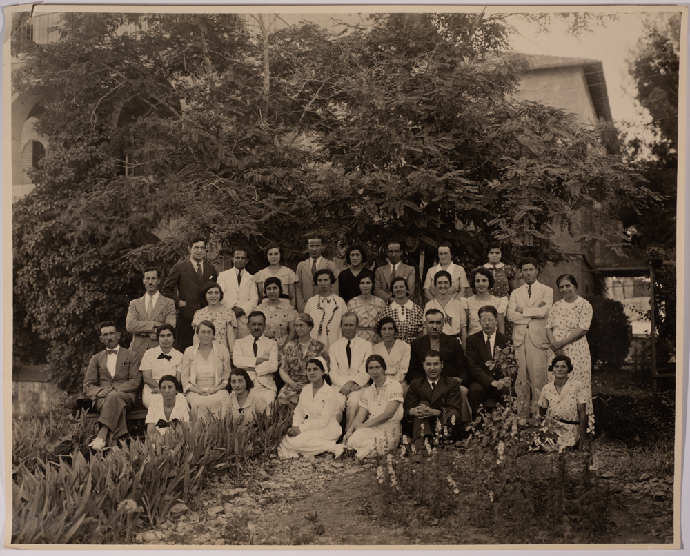 صورة غير ملونة يظهر فيها موظفي مدرسة الفرندز، وُجدت في مجموعة مدارس الفرندز .