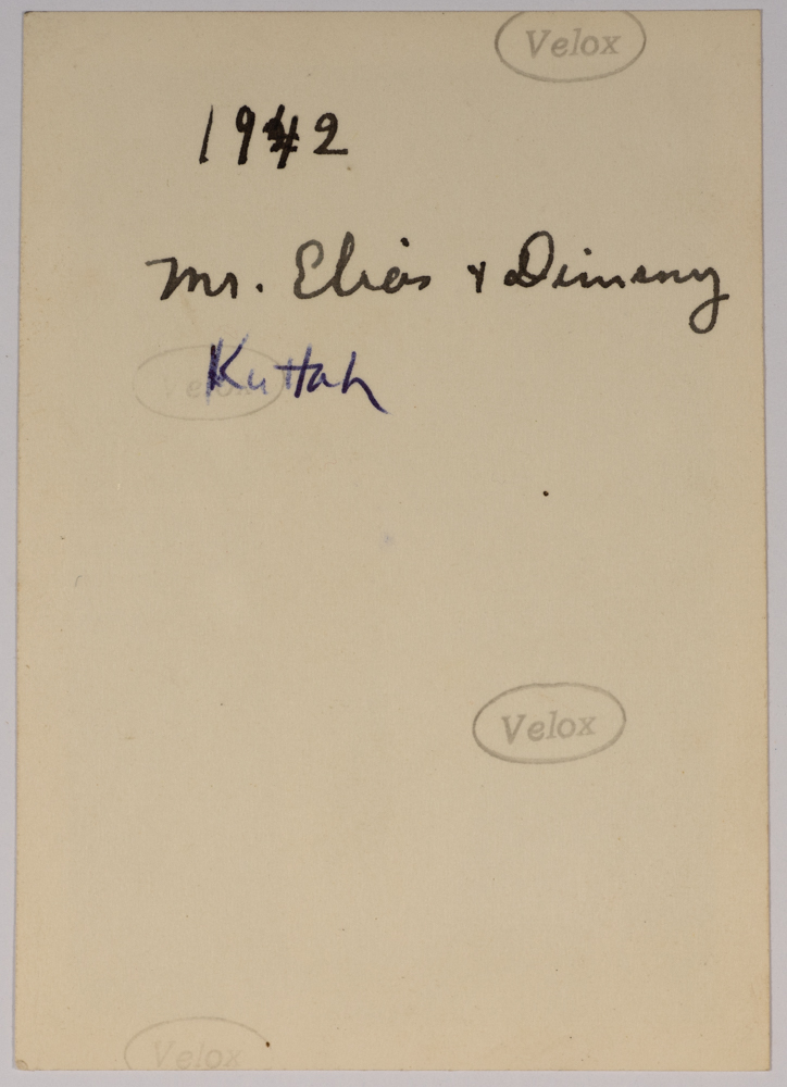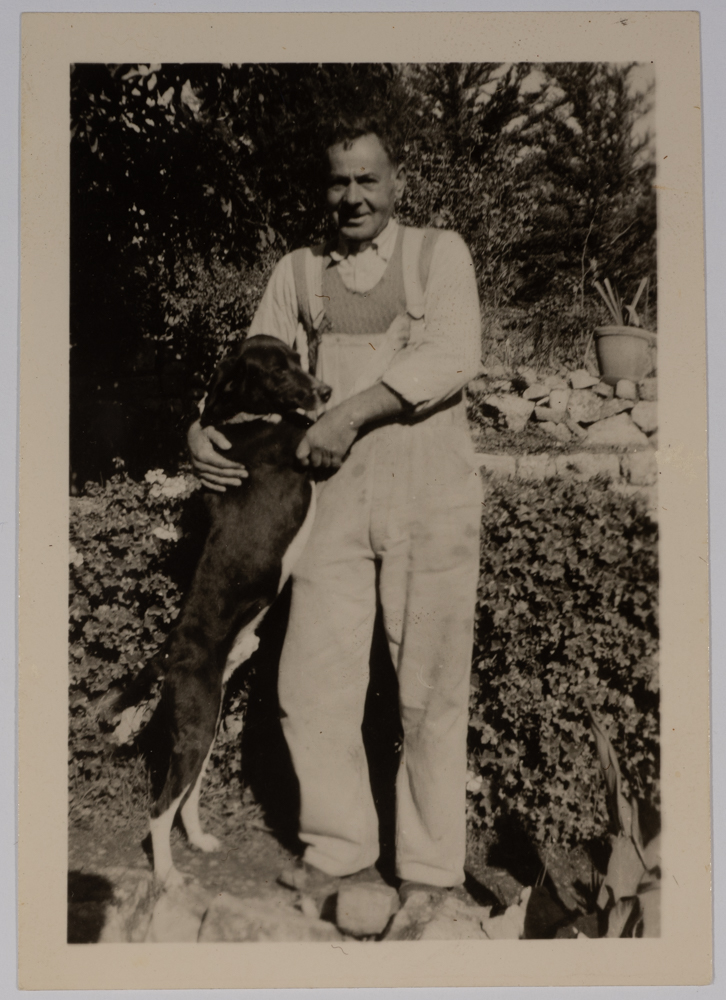 صورة غير ملونة يظهر فيها السيد إلياس مع كلب عام 1942، وُجدت في مجموعة مدارس الفرندز .