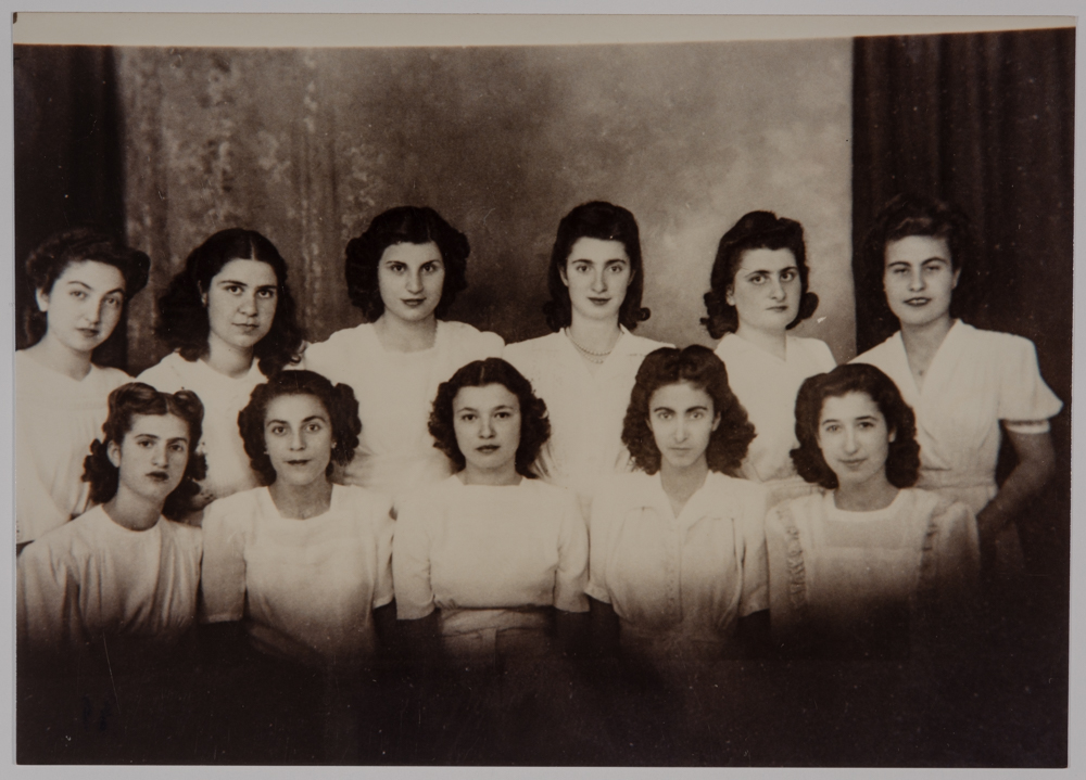صورة غير ملونة يظهر فيها مجموعة طالبالت من مدرسة الفرندز عام 1945، وُجدت في مجموعة مدارس الفرندز .