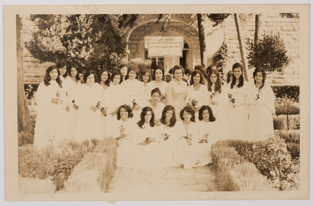 صورة غير ملونة يظهر فيها خريجات مدرسة الفرندز لعام 1976، وُجدت في مجموعة مدارس الفرندز .