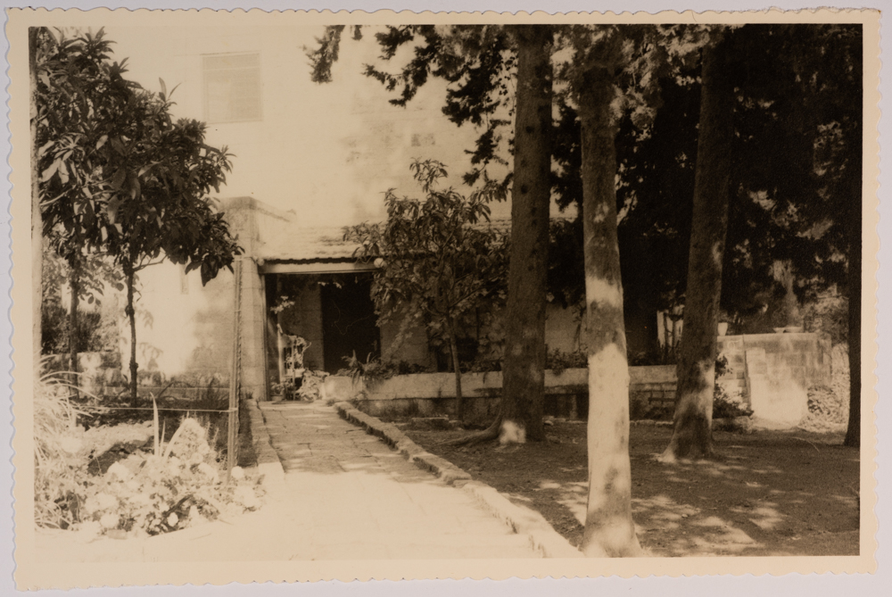 صورة غير ملونة يظهر فيها ساحة مبنى، وُجدت في مجموعة مدارس الفرندز .