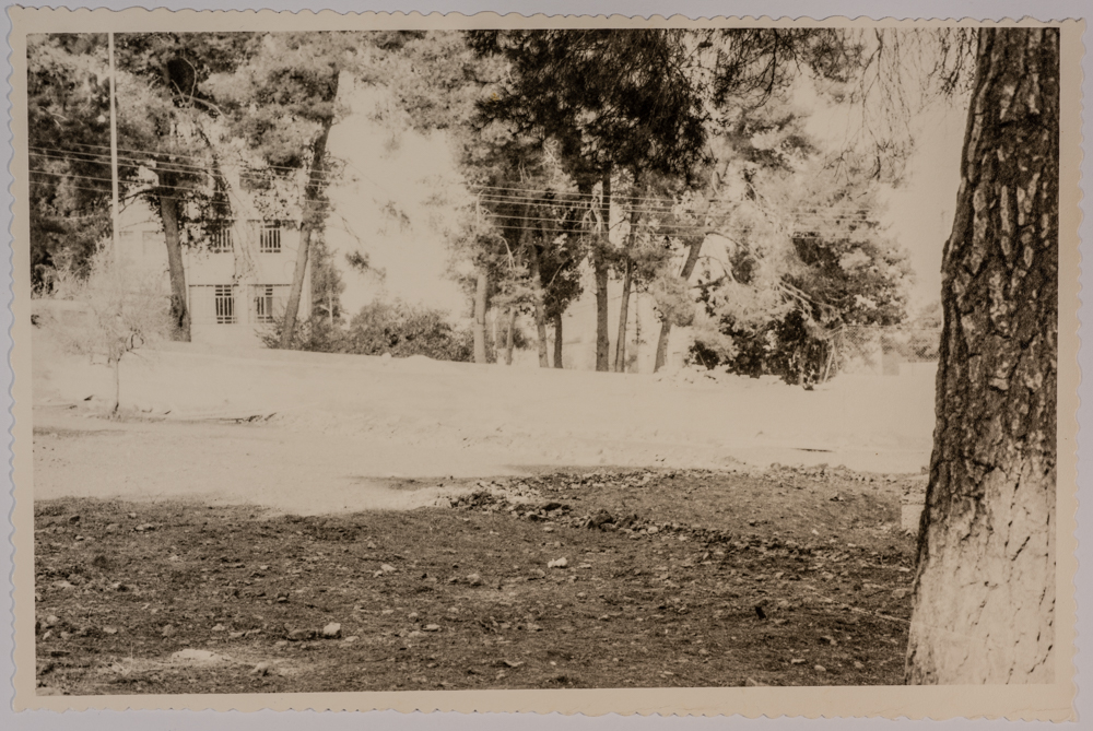 صورة غير ملونة يظهر فيها ساحة وجزء من مبنى، وُجدت في مجموعة مدارس الفرندز .