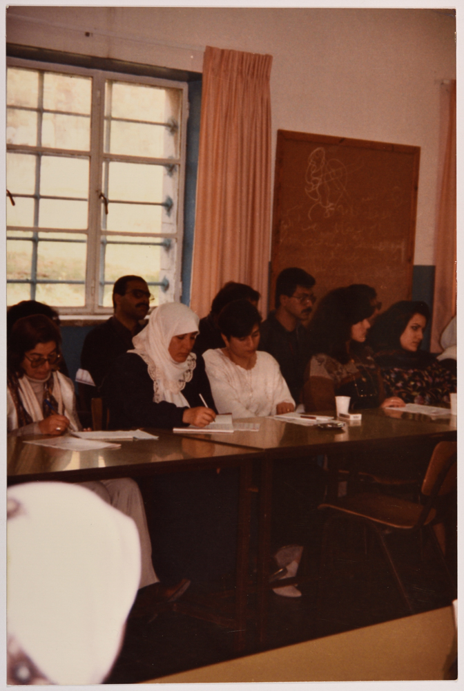 صورة ملونة يظهر فيها مجموعة أشخاص يستمعون لمتحدث ويكتبون، وُجدت في مجموعة مدارس الفرندز .