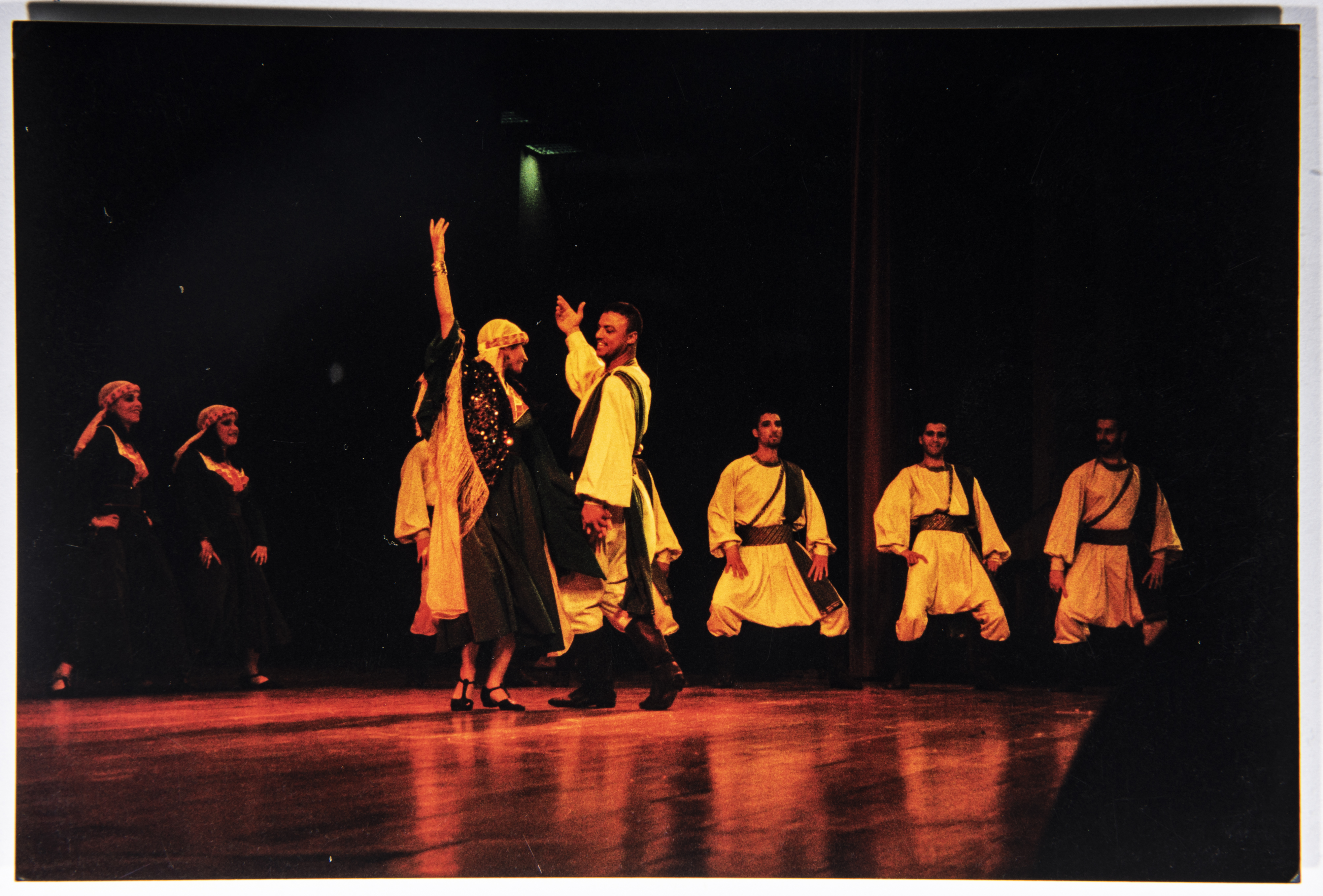صورة ملونة لفرقة الفنون الشعبية الفلسطينية خلال جولة في لبنان عام 2000