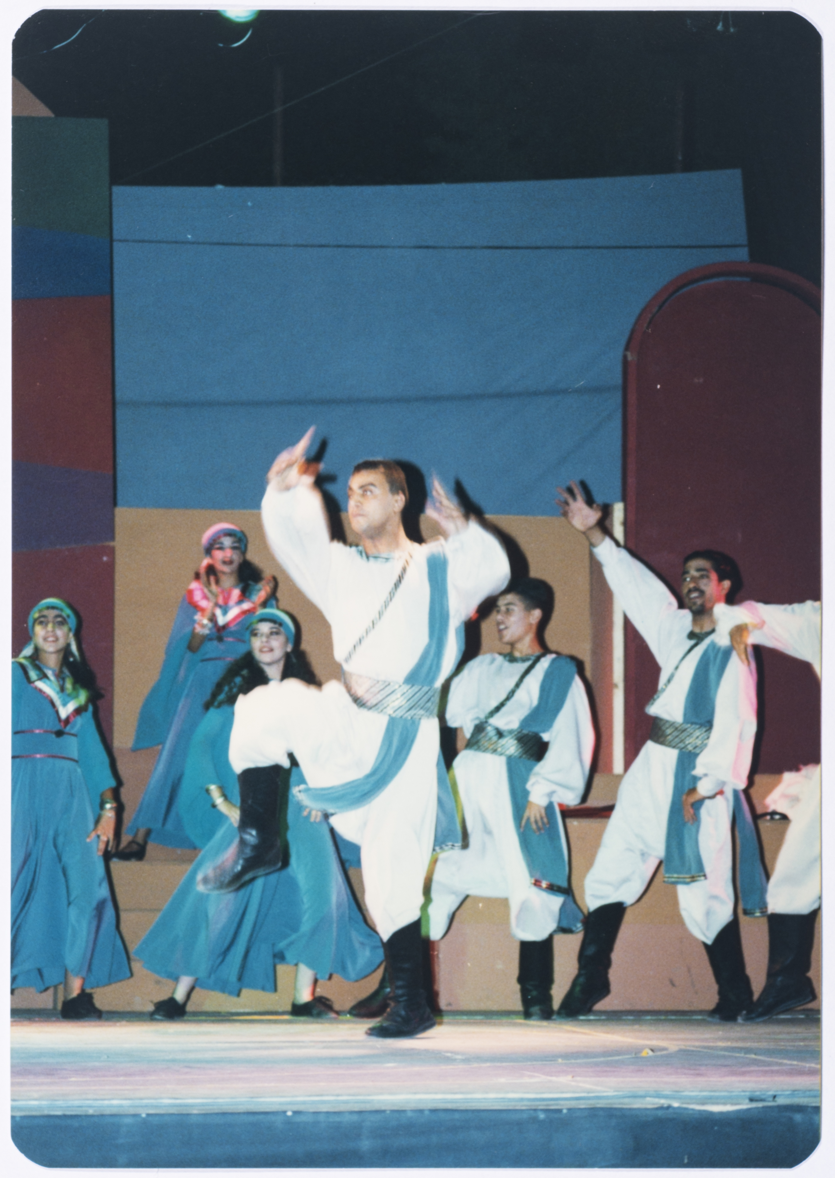صورة ملونة تقدم فيها فرقة الفنون الشعبية عملها الفني "زغاريد" عام 1997.