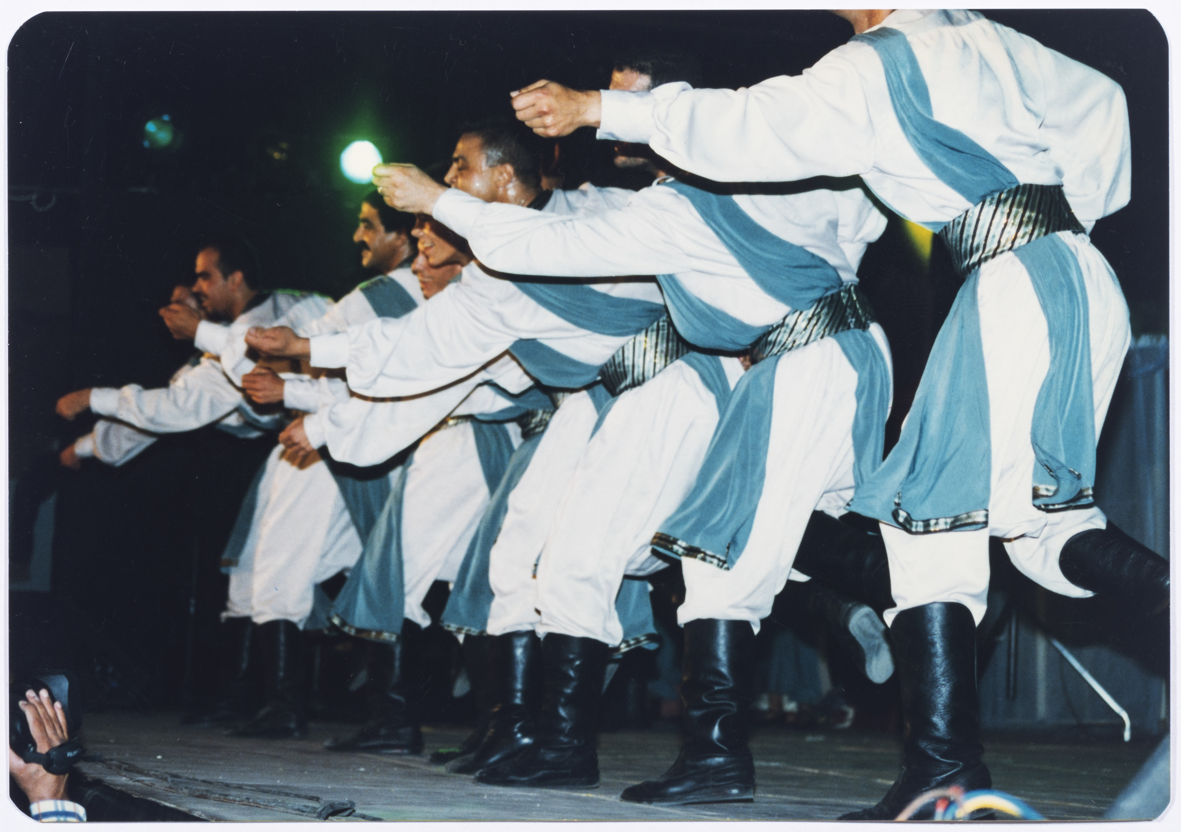 صورة ملونة تقدم فيها فرقة الفنون الشعبية عملها الفني "زغاريد" عام 1997.