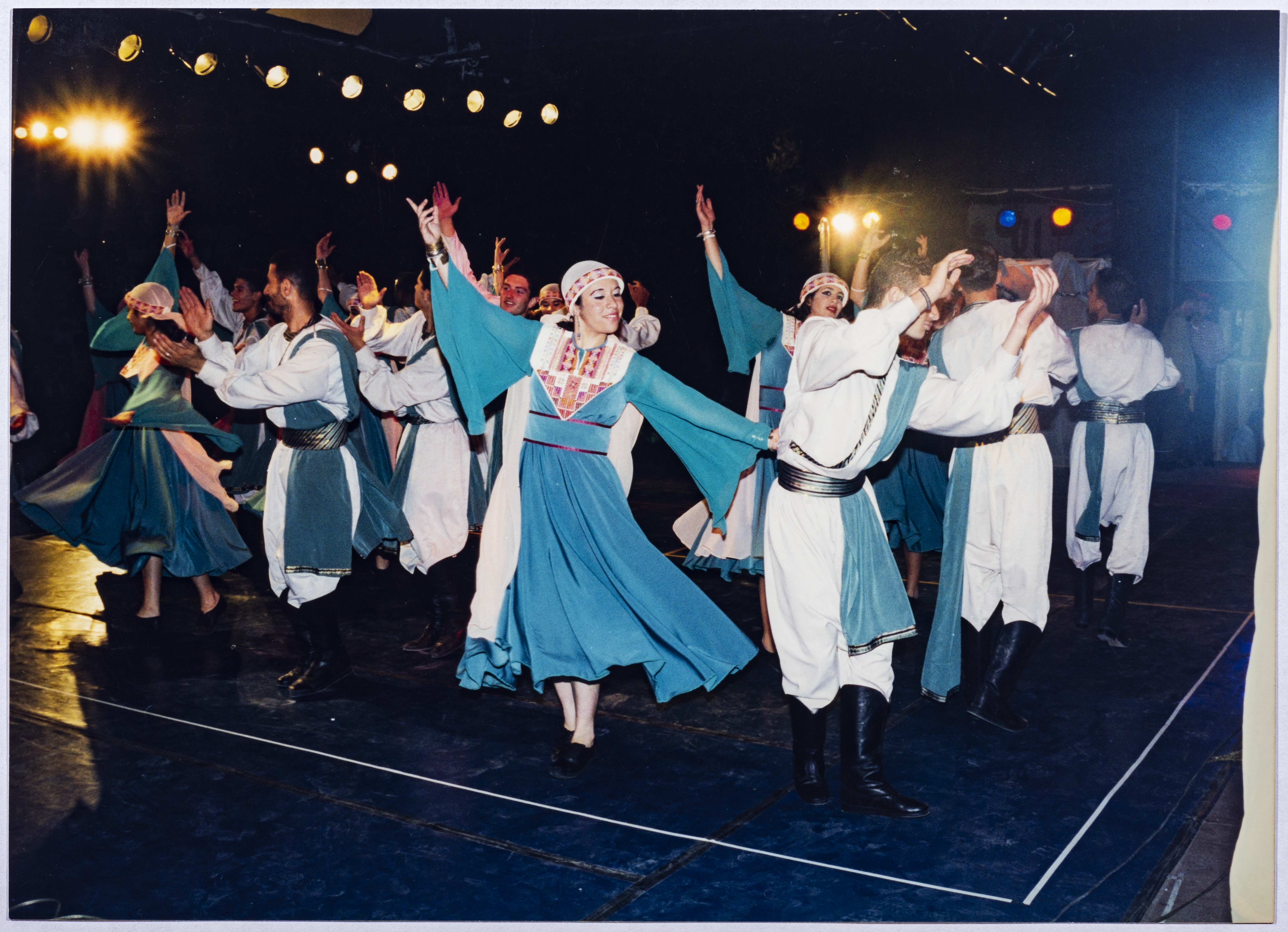 صورة ملونة تقدم فيها فرقة الفنون الشعبية عملها الفني "زغاريد" عام 1997.