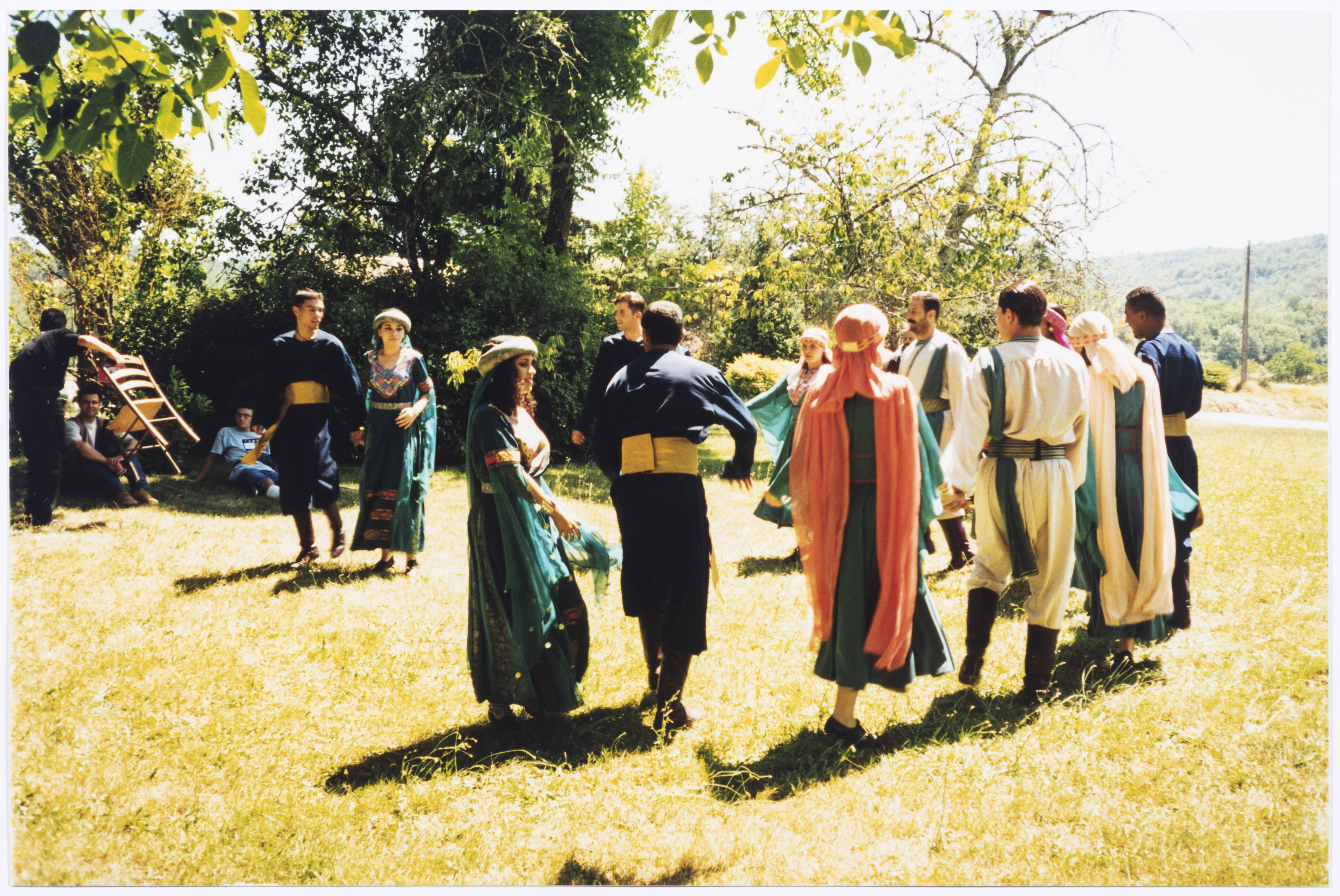 صورة ملونة لفرقة الفنون الشعبية خلال جولة عروض في فرنسا عام 1999