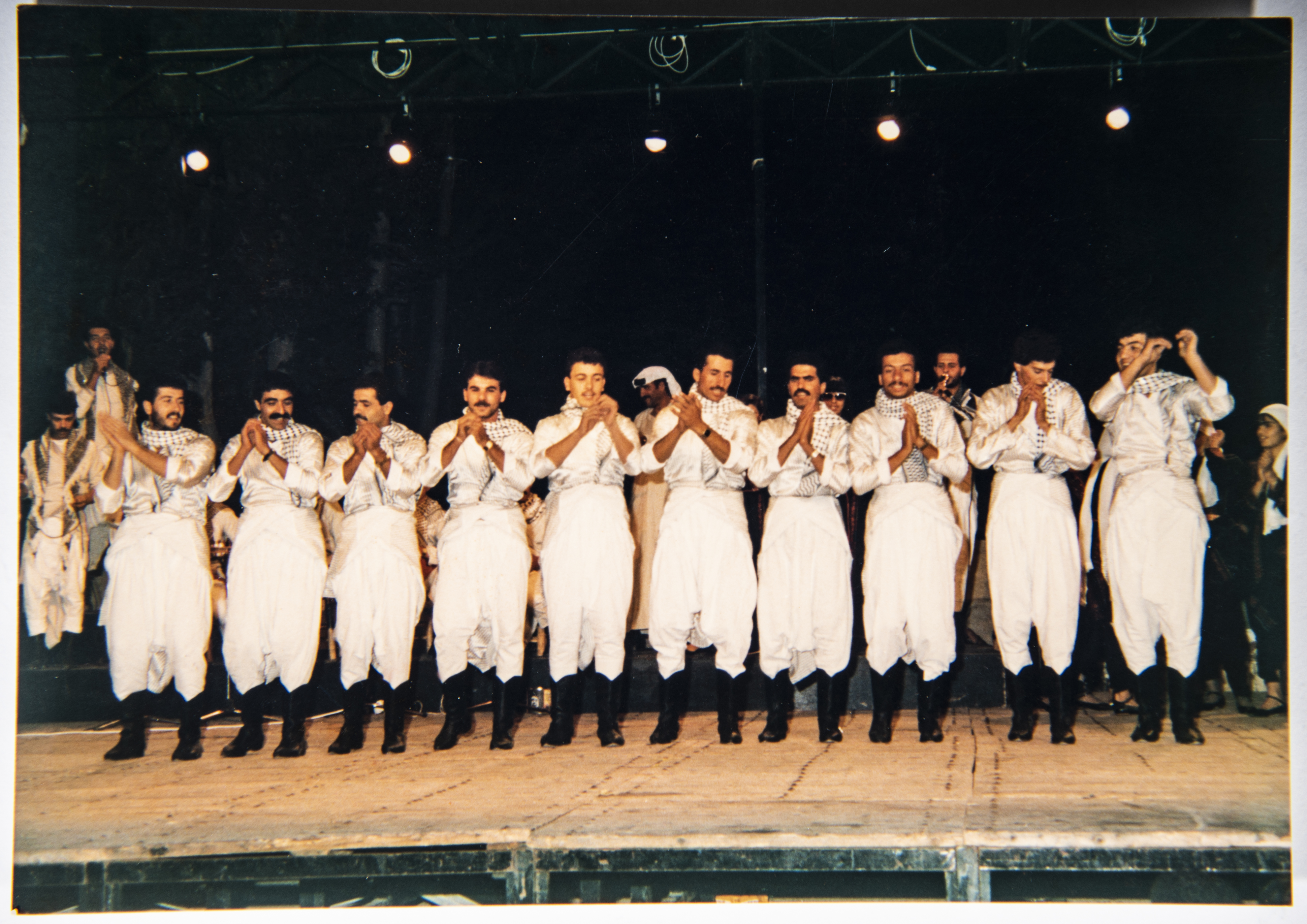 صورة التقطت عام 1987 لفرقة الفنون الشعبية الفلسطينية تقدم عمل فني بعنوان "أفراح فلسطينية".