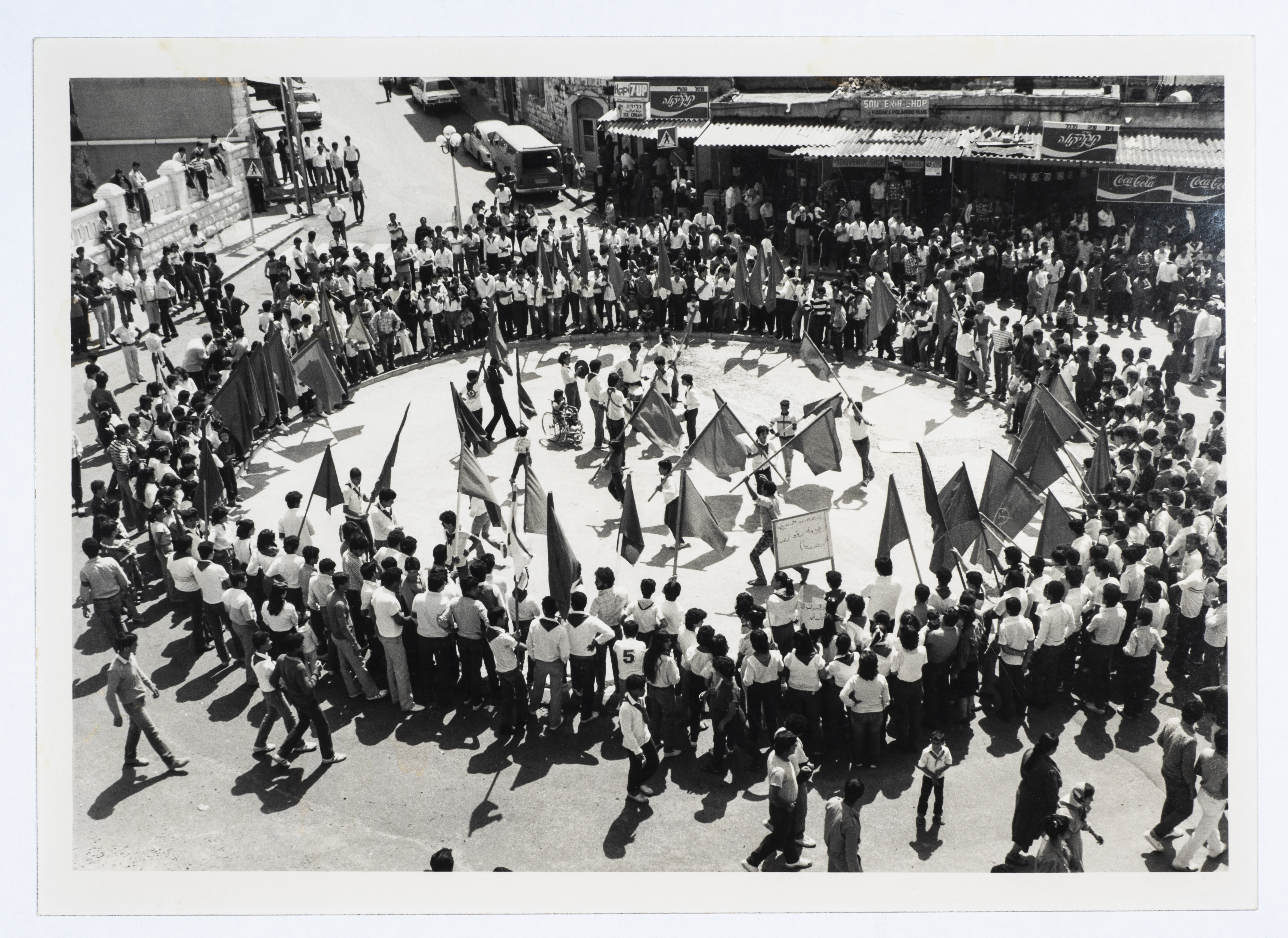 A black-and-white photograph of the May 1 demonstration in Nazareth in 1984, as part of the activities of the Israeli Communist Party in the city of Nazareth.