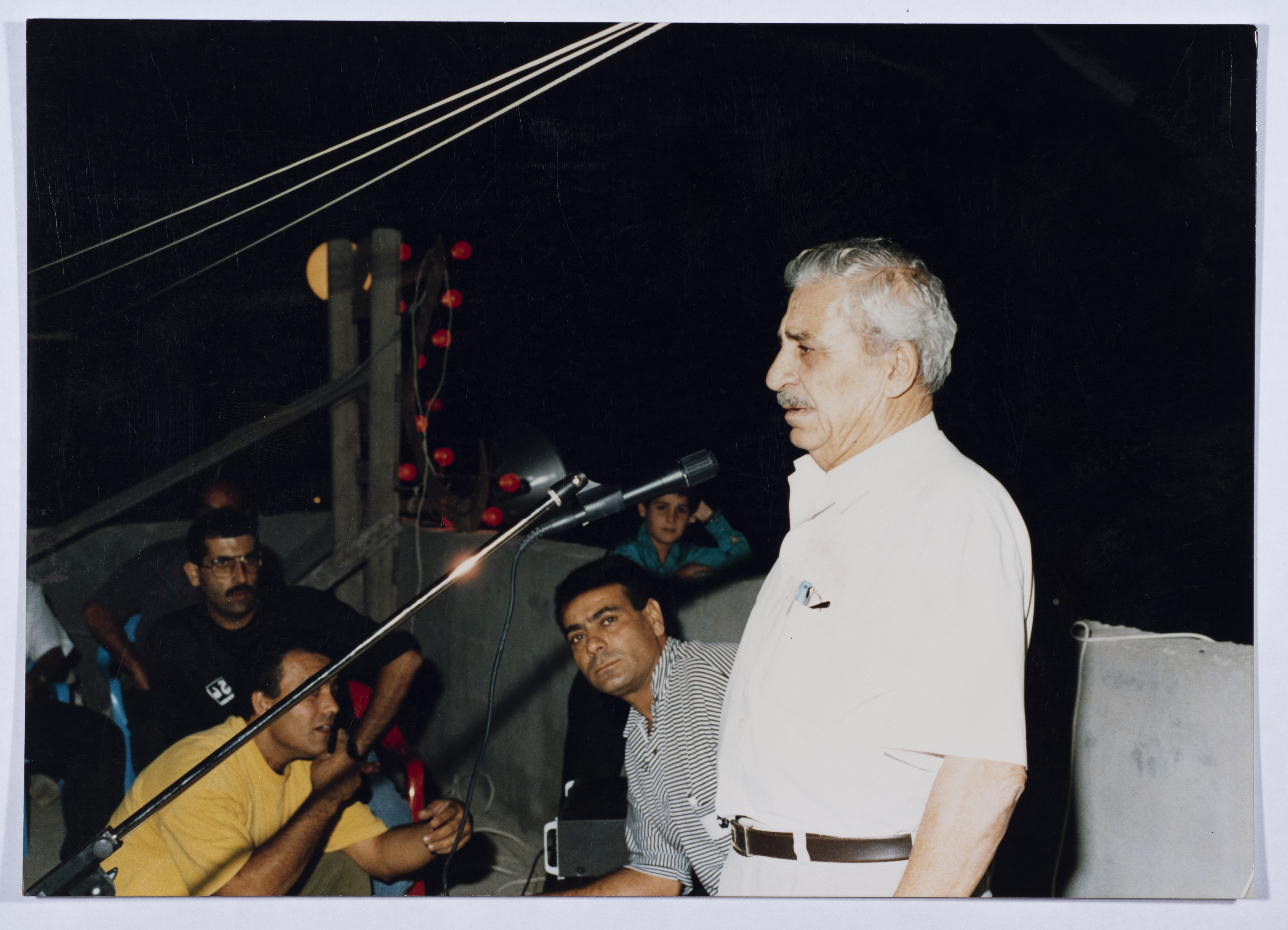 A colour photograph showing Tawfiq Ziad during an election campaign for the Nazareth Democratic Front.