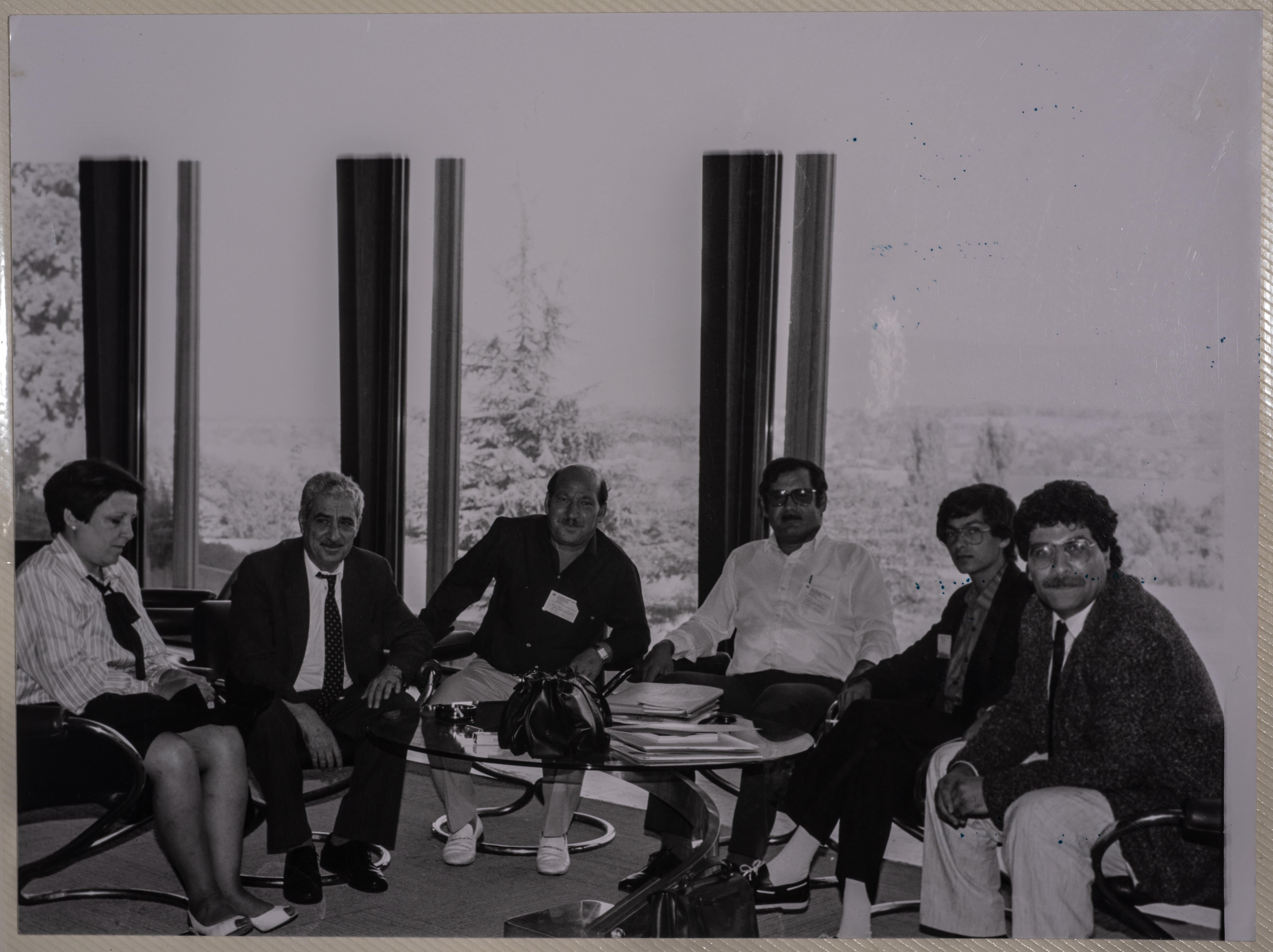 A black-and-white photograph showing Tawfiq Ziad in events as mayor of Nazareth during the 1970s and 1980s.