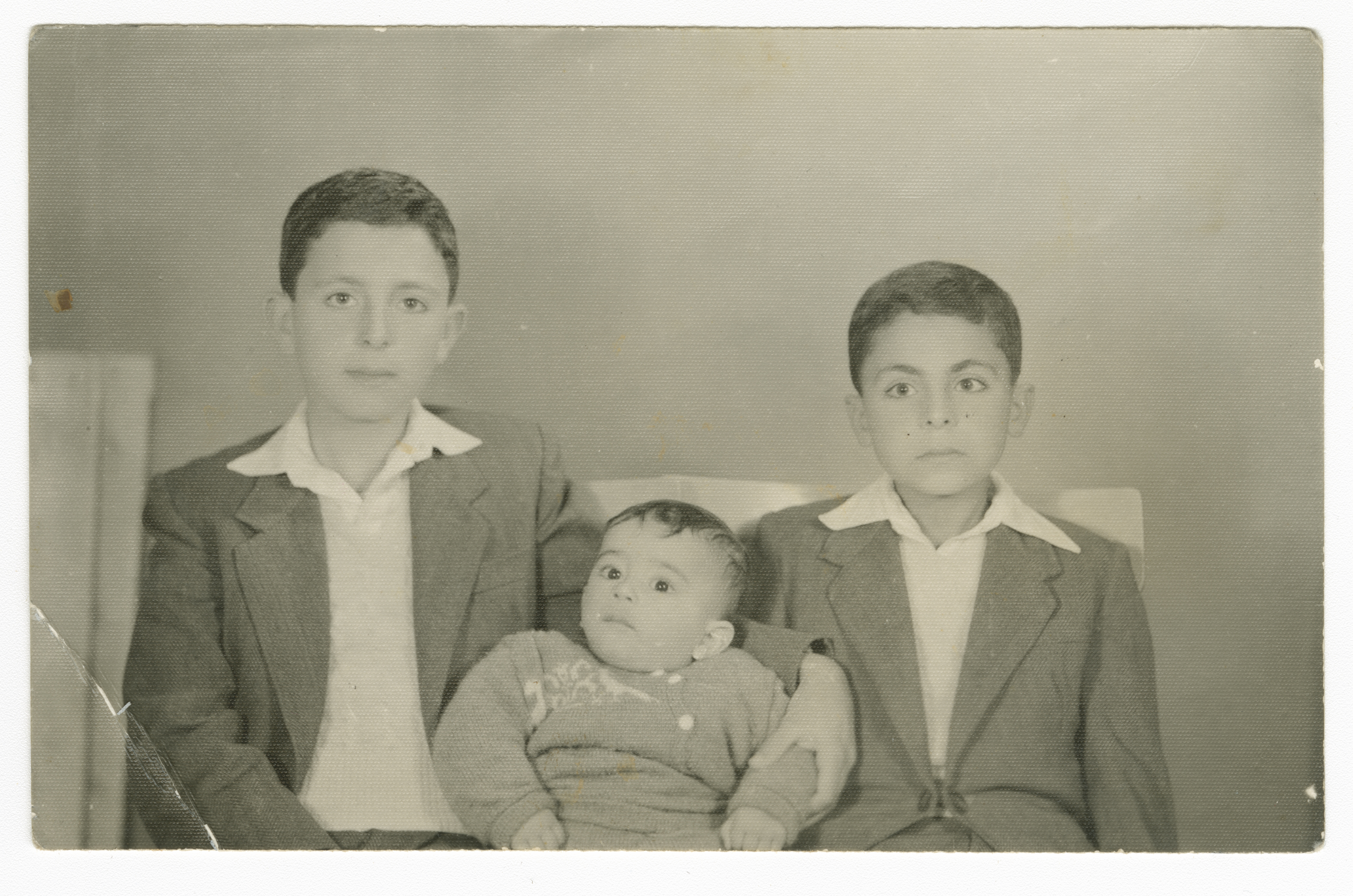 Taken in the 1950s, this photograph shows Samir Sweiti, first from the right, and next to him are his brothers, Saed and Sami, in Jericho.