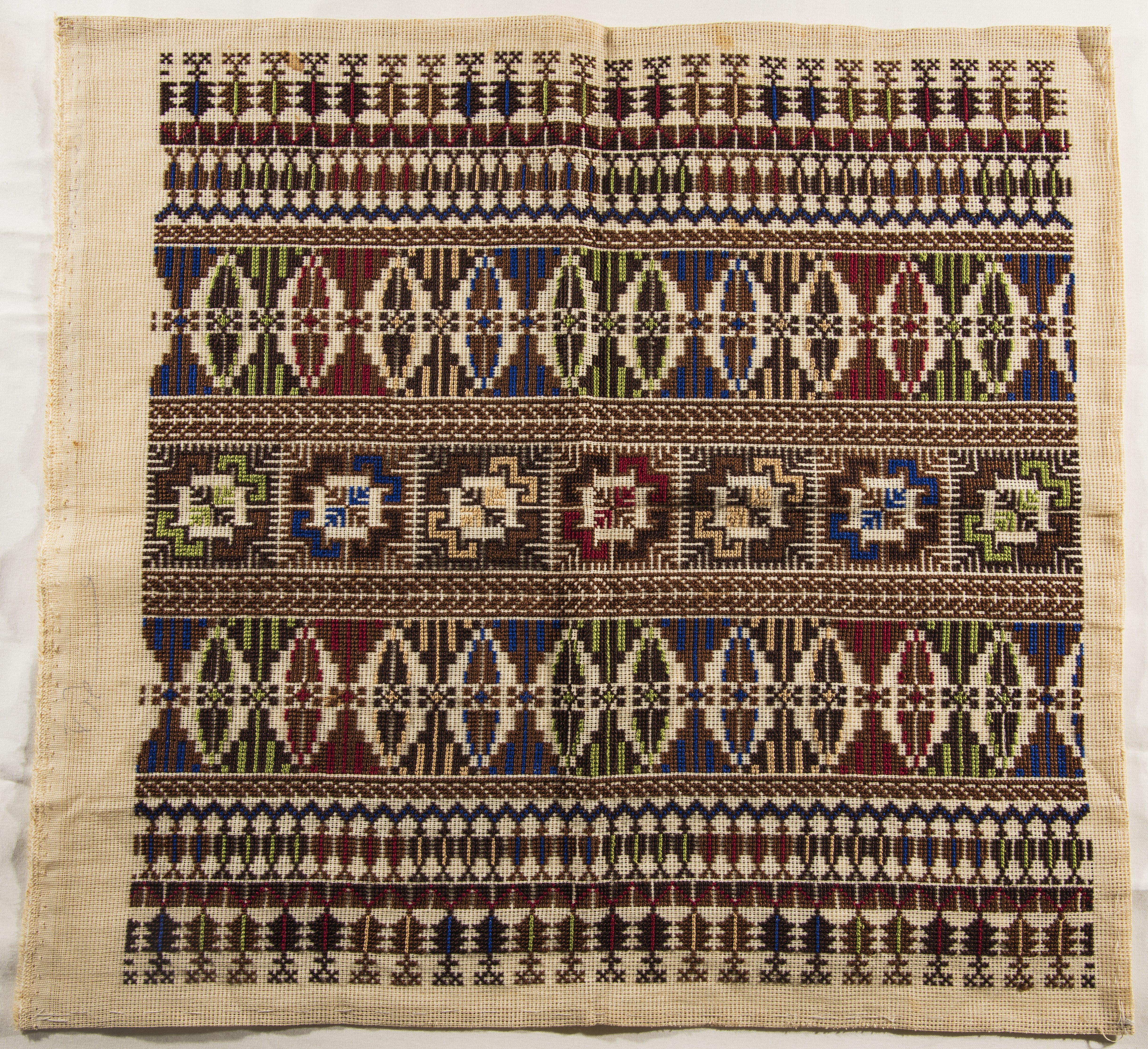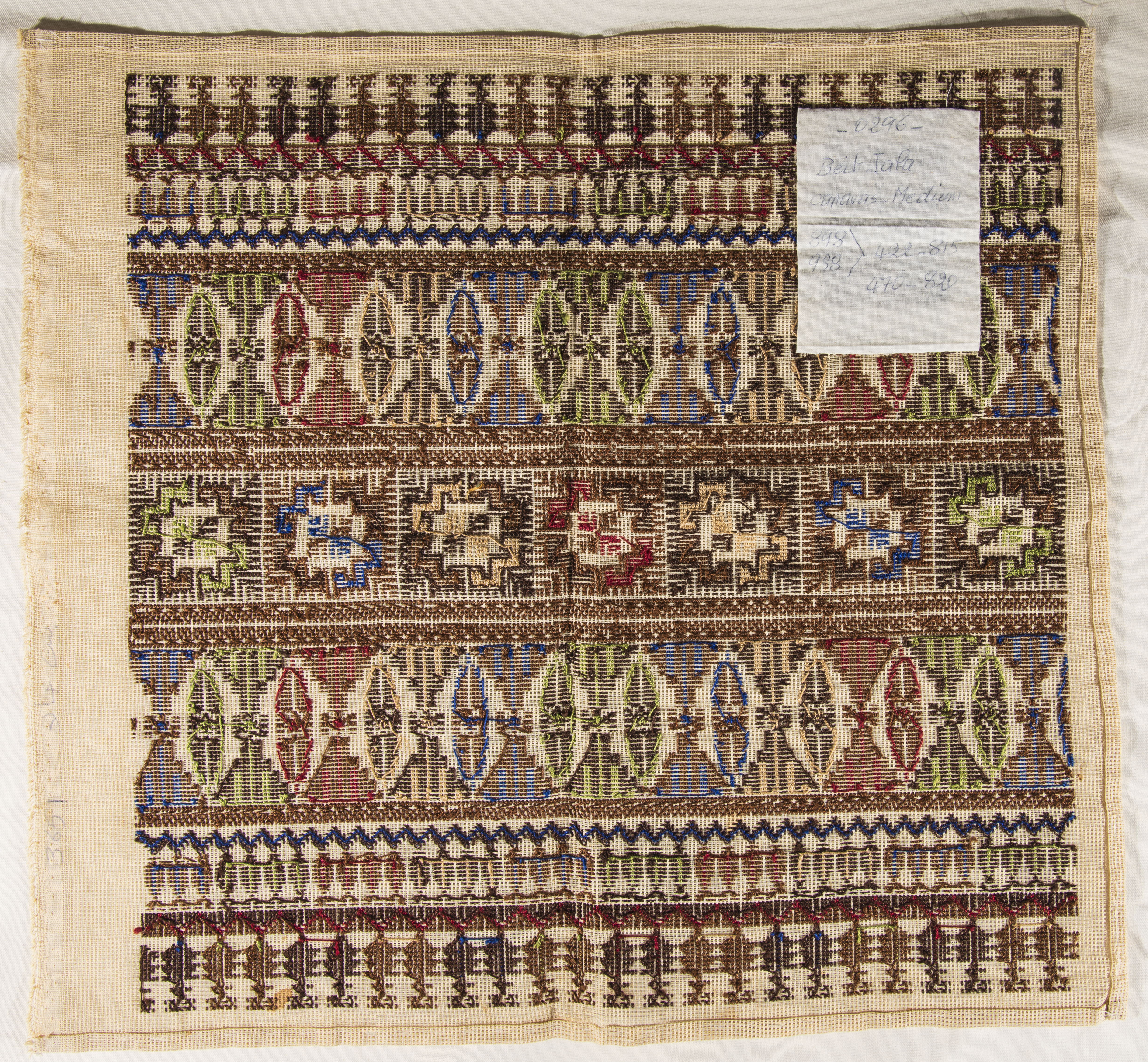 قطعة مُطرزةٌ أنتجتها نساء جمعية إنعاش المخيم، لبنان، سبعينيات القرن العشرين