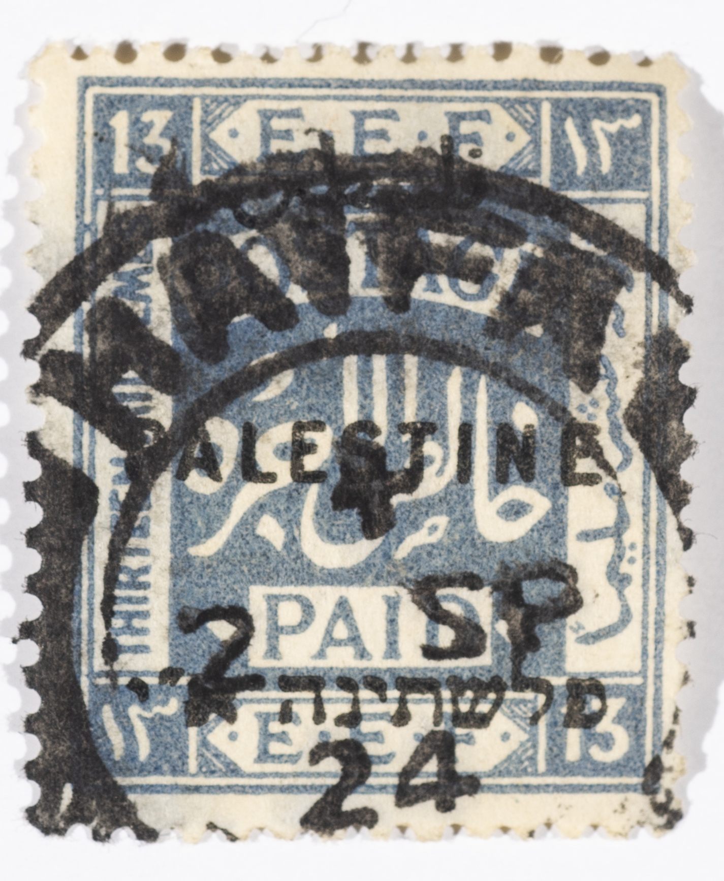 A postage stamp used in Palestine during the British Mandate