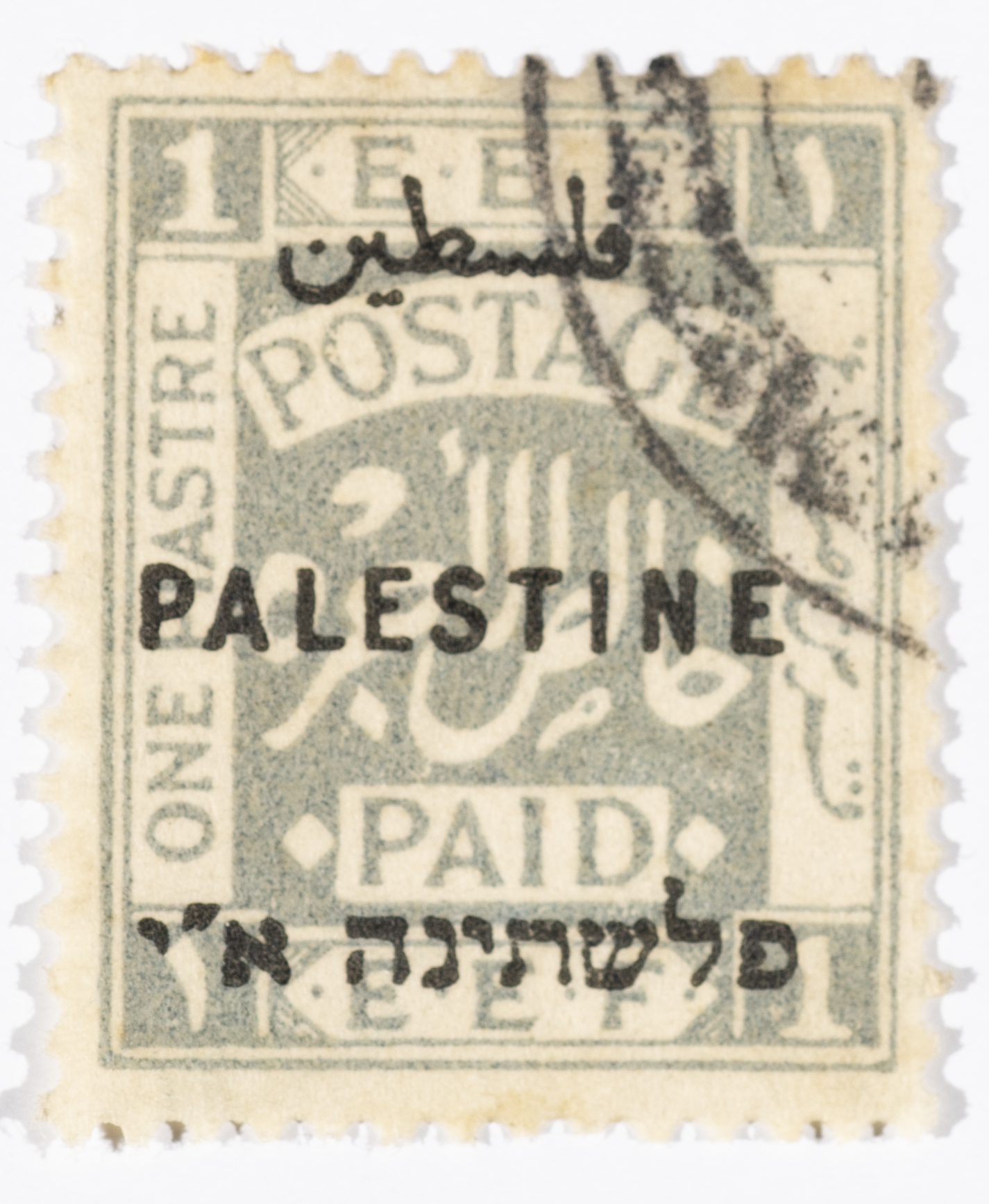 A postage stamp used in Palestine during the British Mandate