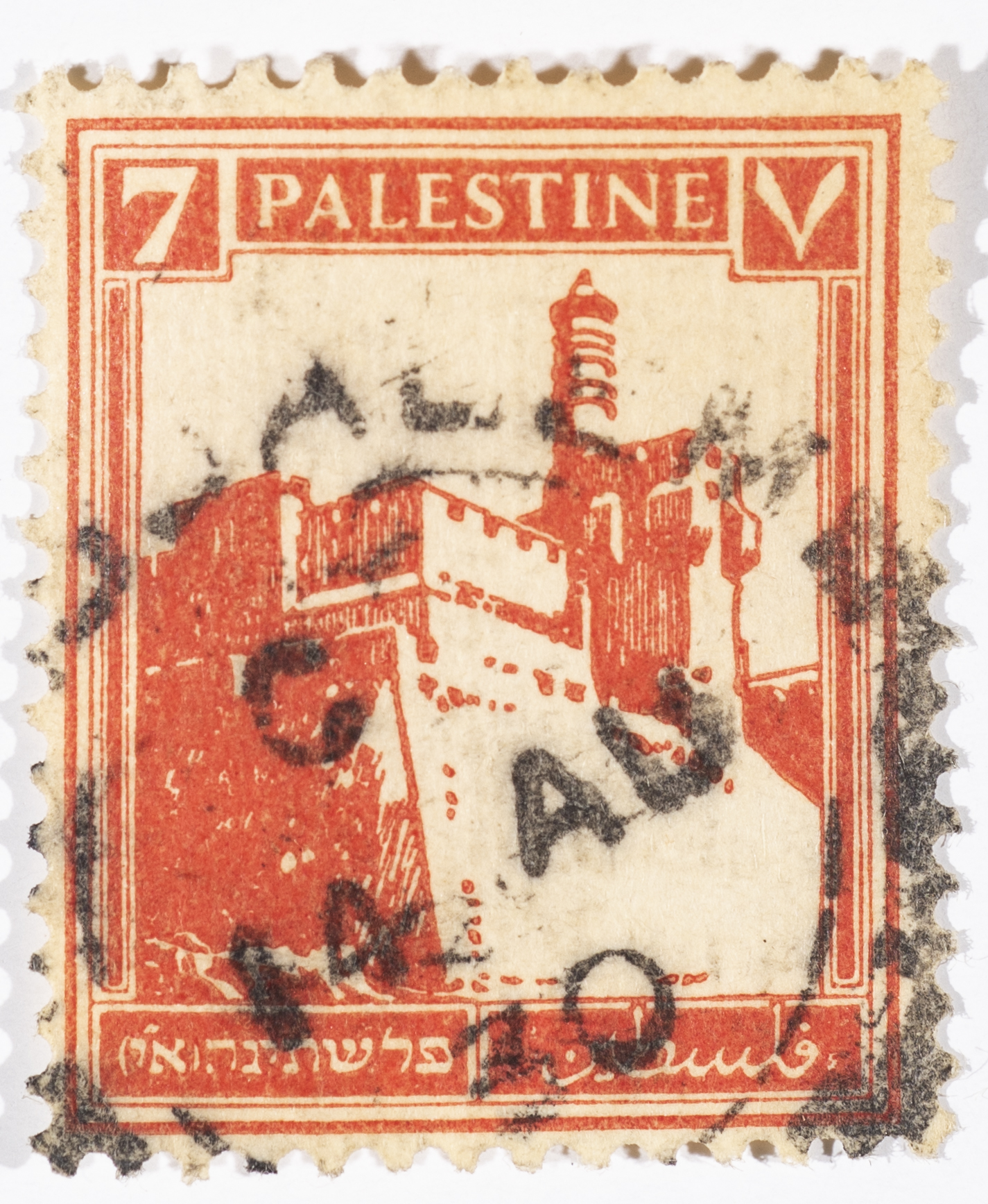 A postage stamp used in Palestine during the British Mandate