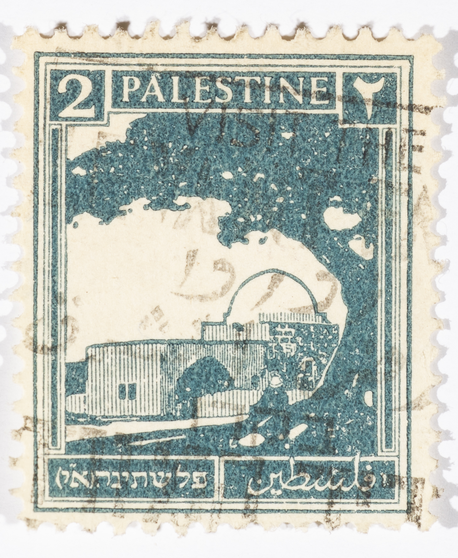 A postage stamp used in Palestine during the British Mandate