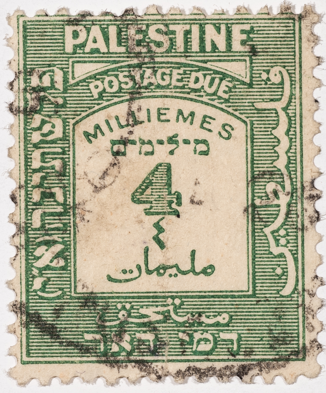 A postage stamp used in Palestine during the British Mandate