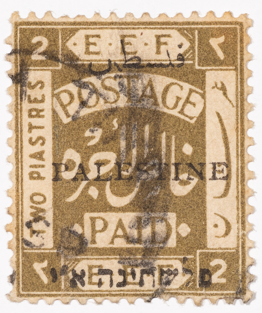 A postage stamp used in Palestine during the British Mandate