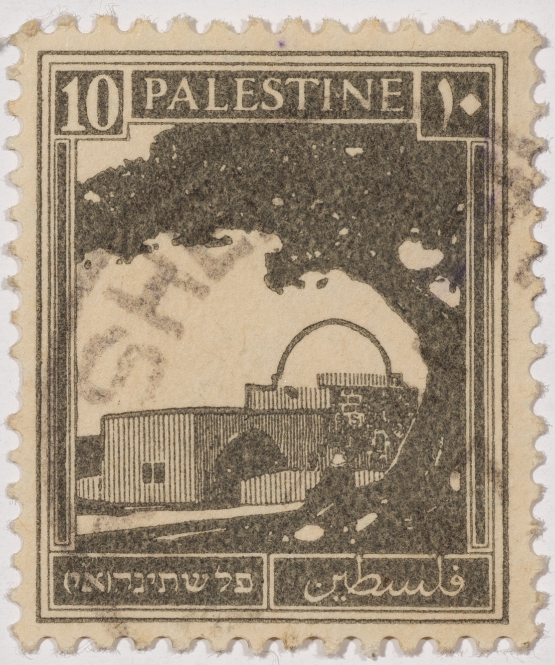 A postage stamp used in Palestine during the British Mandate
